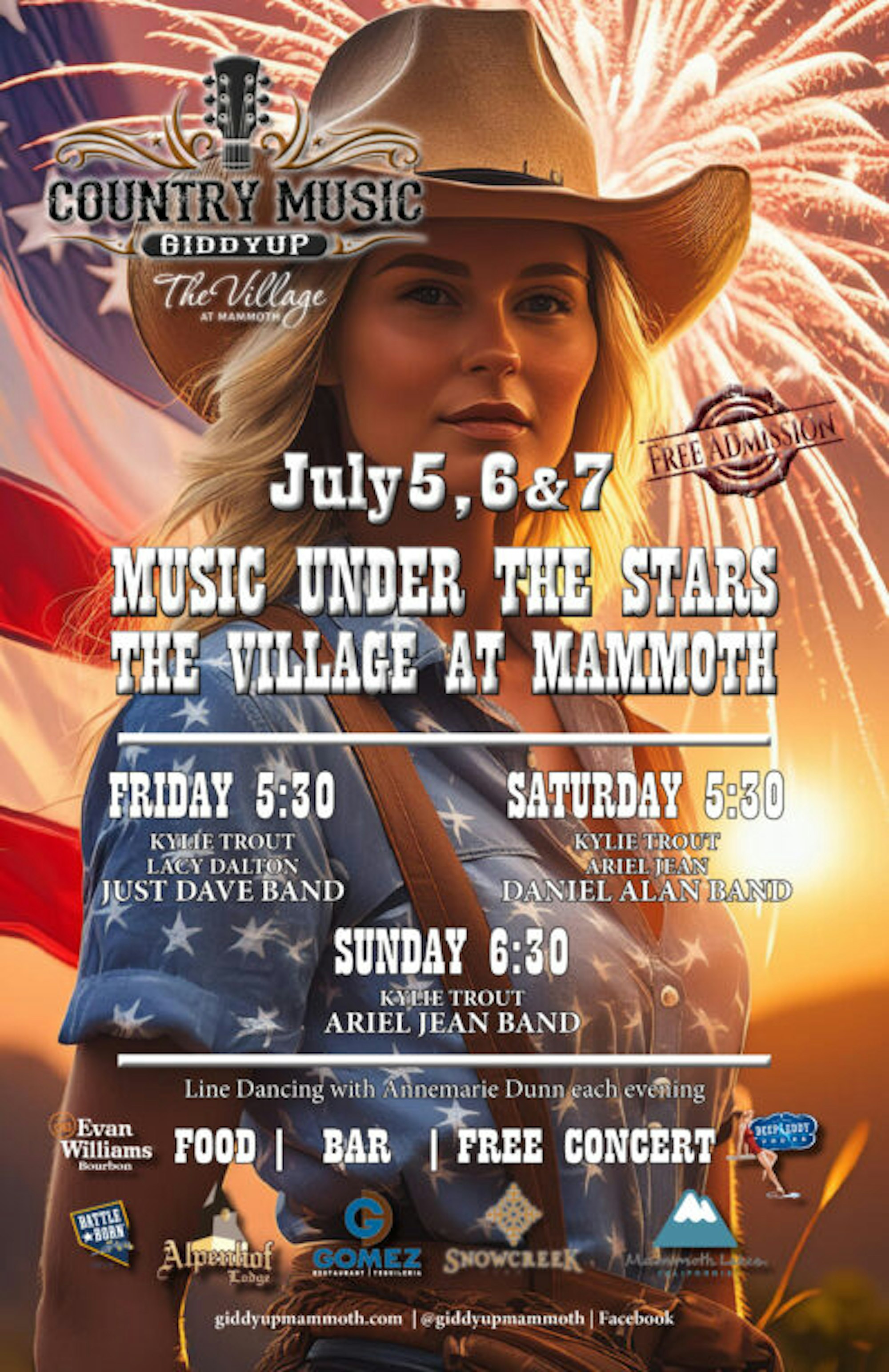 Mammoth, California, is the premier skiing destination for all of Southern California, located just four hours from Los Angeles and its world-class terrain. What’s lesser-known is how fantastic Mammoth is in the summer. Imagine, after a long day swimming at Rainbow Falls and exploring Devil’s Postpile, you’re relaxing in one of the legendary hot springs, contemplating what the night might bring. Well, after an amazing 4th of July celebration, Mammoth is hosting a free three-day Country Festival in the Village. With Just Dave, Daniel Alan Band, Ariel Jean Band, and more keeping the tunes flowing, and Annemarie Dunn leading line dancing, there are plenty of smiles and good times to be had.