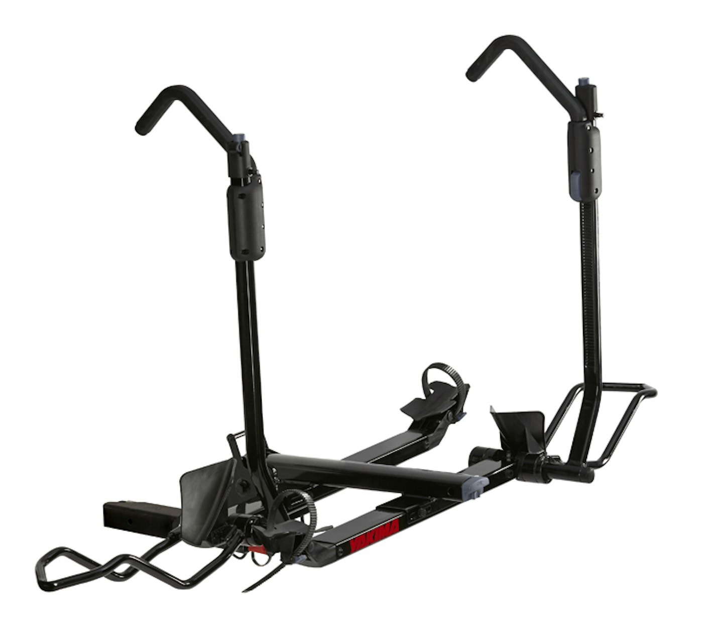 The HoldUp Evo hitch-mounted bike rack is built for seamless integration with all the new bike trends like fat tires and boost hubs. The swing arm mechanism locks your bikes by the tires, is gentle on the fanciest carbon frames and won’t scratch your treasured paint job. Yakima went with an easy-to-use foot pedal design to make tilting the rack out of the way to access your trunk or tailgate painless. With a twist of a bolt you can horizontally align the two racks to use with any combination of bikes. Installing and removing the rack is also effortless with the new tool-free SpeedKnob system. But the coolest part about this rack is that—if you have the 2” hitch version—you can add another two bike racks for those days where the crew’s riding deep.