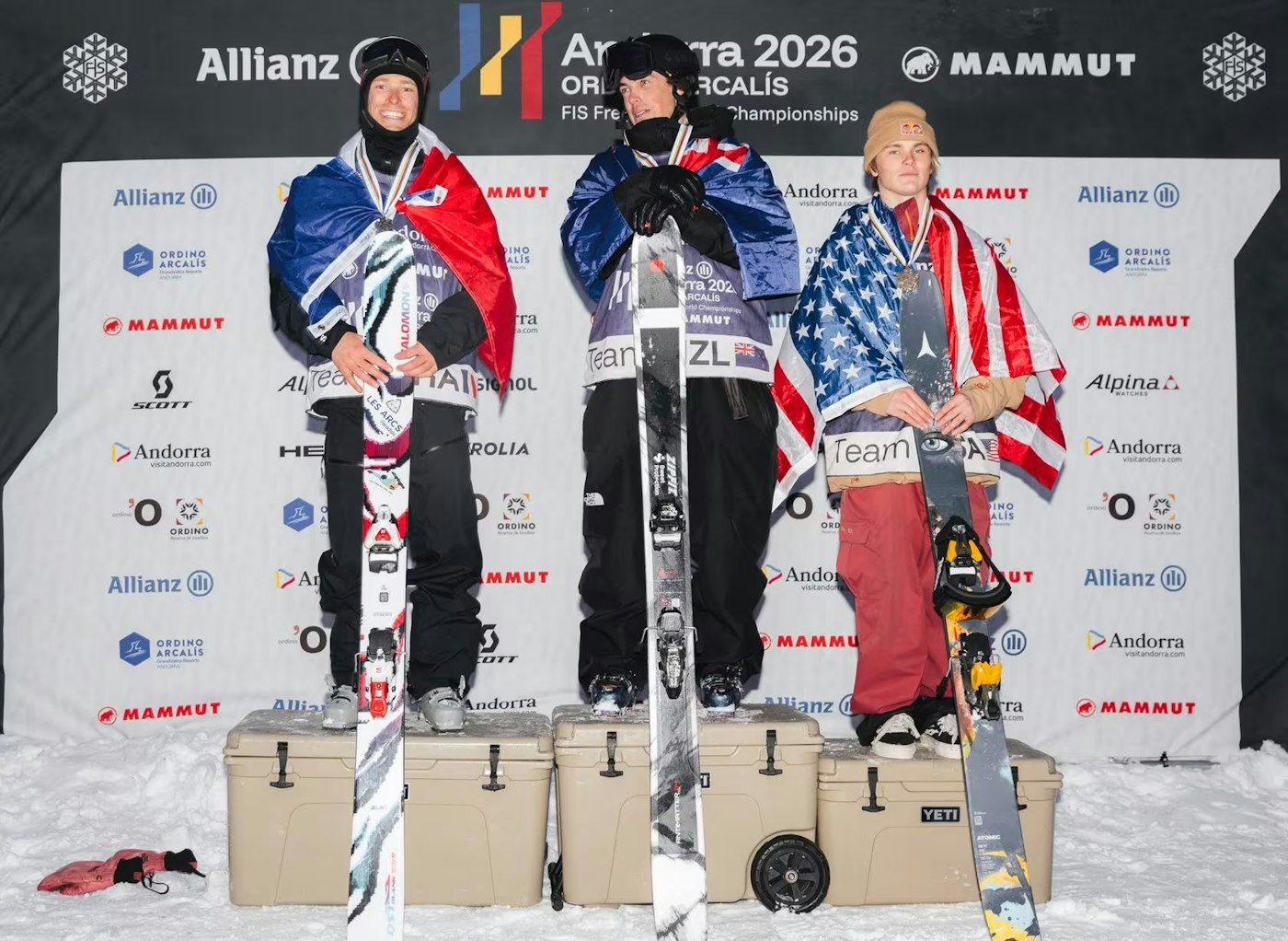 Third place went to a recognizable name from the world of ski films, Jackson Hole's Kai Jones. The youngest rider at the World Championships, Jones put on a creative show, highlighted by a huge double at the end of his run that he styled out and put to his feet for a 77.67. The Frenchman Ugo Troubat, essentially a wildcard for the event, filling in for the injured Virgile Didier, seized the moment with an 86.00! He stomped three 360s, including a pinpoint snipe right off the bat into herroing terrain, and capped it off with a giant backflip off an unhit cliff.