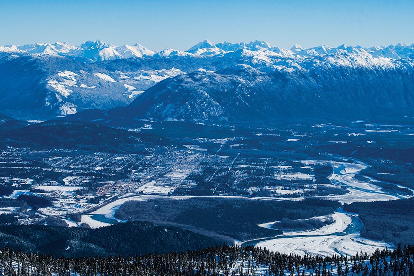 View of the town of Terrace and the Skeena River from No Name Ridge.