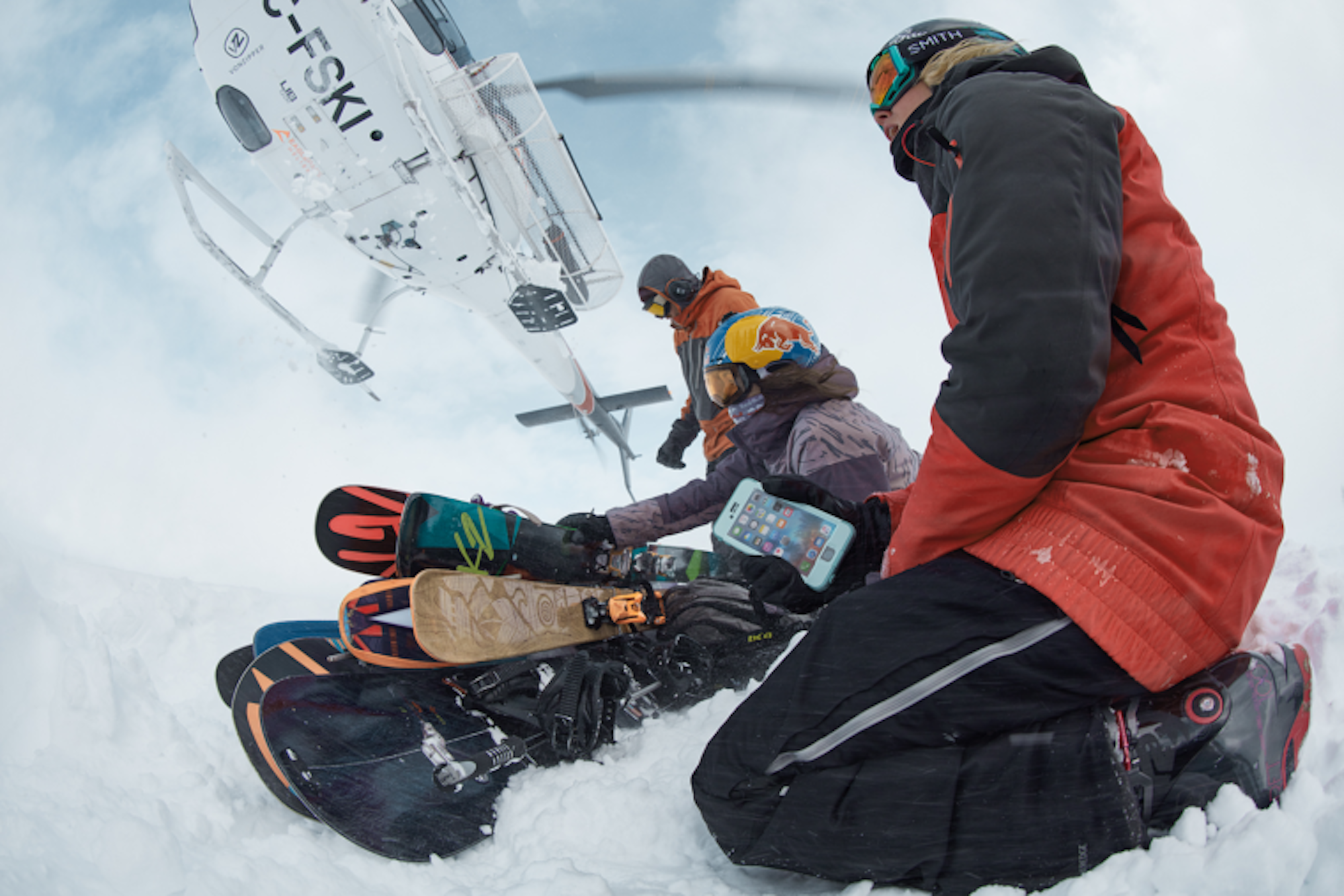The two professional skiers are participating in a weeklong photoshoot with LifeProof—the manufacturer of waterproof phone cases—in Revelstoke, British Columbia. The ski town is sandwiched between the Selkirk and Monashee ranges, and thanks to its abundant snowfall, combination of high-alpine lines, world-renowned pillow fields, delectable tree skiing and unmatched access, it’s pure bliss for big-mountain skiers. “Revvy,” at it’s known, is also where Monod and duPont first met, where it was friendship at first sight.