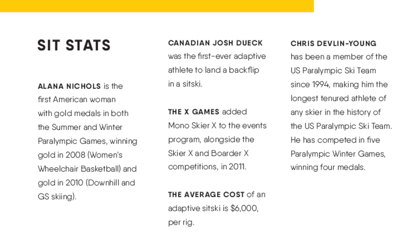 Adaptive sports programs exist around the country—most major ski hubs have an organization that helps people experience that rush of sliding down a snow-covered mountain even after their bodies have been through irreparable trauma.
