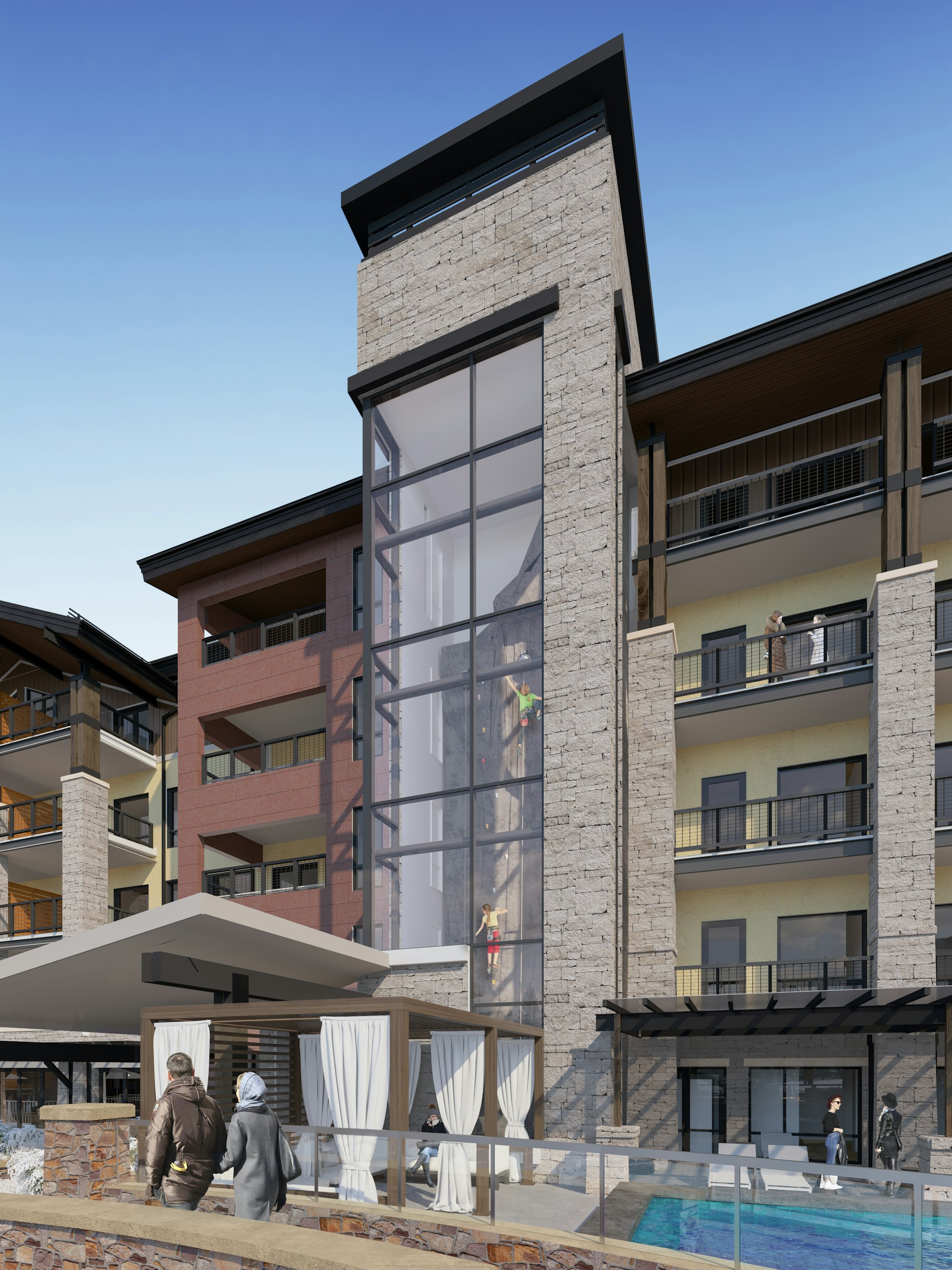 While the previous amenities are simply table stakes for a skier-centric hotel, the outdoor ice-skating rink and glass-enclosed climbing wall are the hallmark features of the hotel. Stroll out the front door to rent a pair of complimentary skates from a repurposed Airstream trailer to channel your inner Chazz Michael Michaels from Blades of Glory on the rink. Coloradoâs tallest indoor rock-realistic climbing wall greets guests as they approach the hotel. The five-story-high climbing wall features three self-belay routes and is also complimentary for guests, so trade your ski boots for a pair of climbing shoes and challenge your buddies to a high-stakes race to the top after a long day on the slopes.