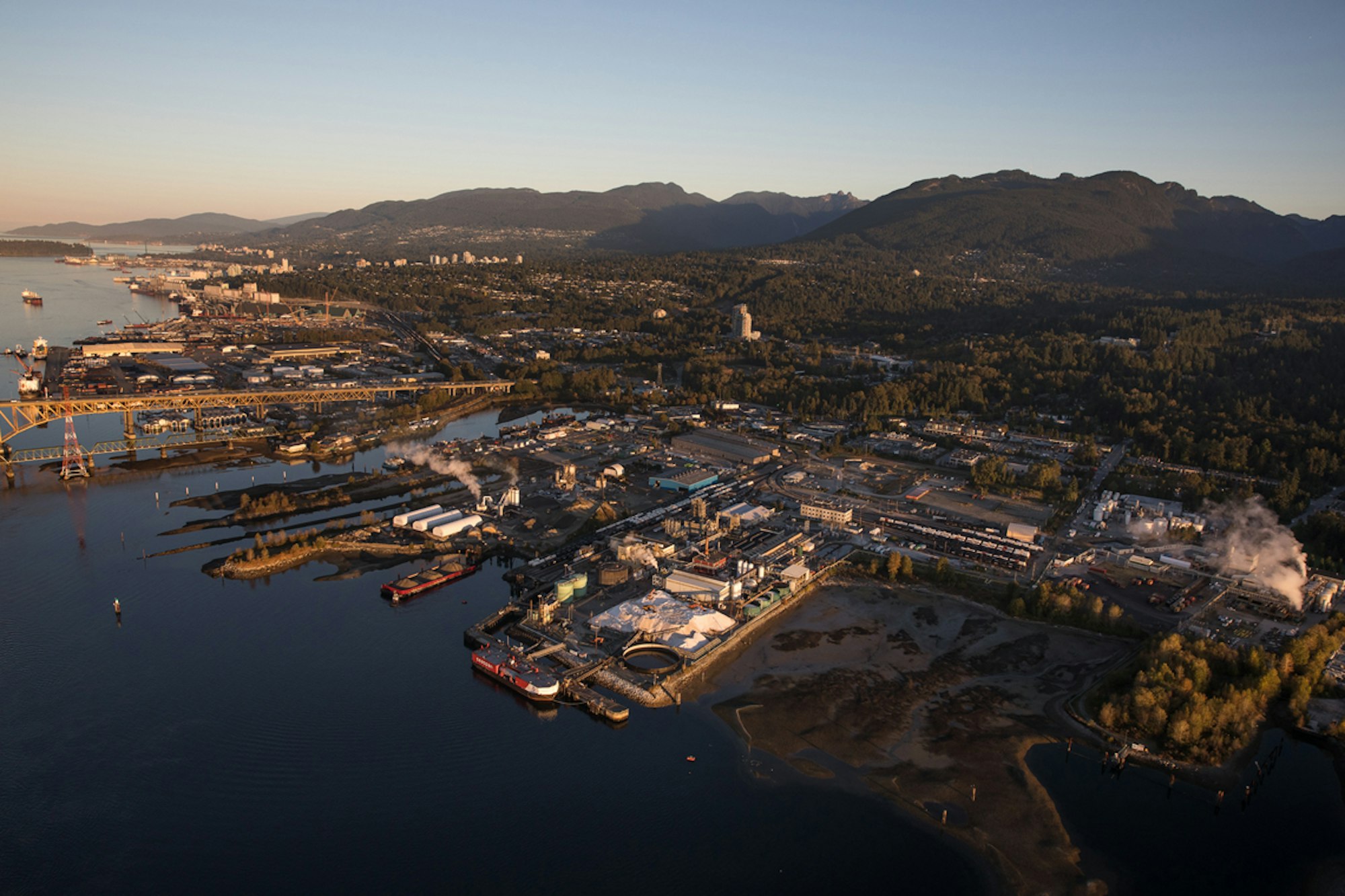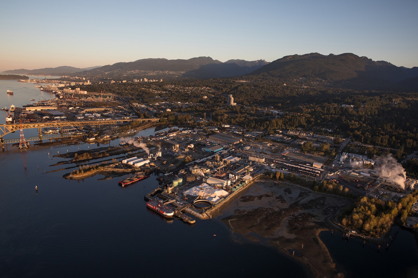 An aerial shot of Arc’teryx’s hometown, Vancouver. Having a factory so close to its headquarters and design center creates an incredibly efficient manufacturing process for the brand.