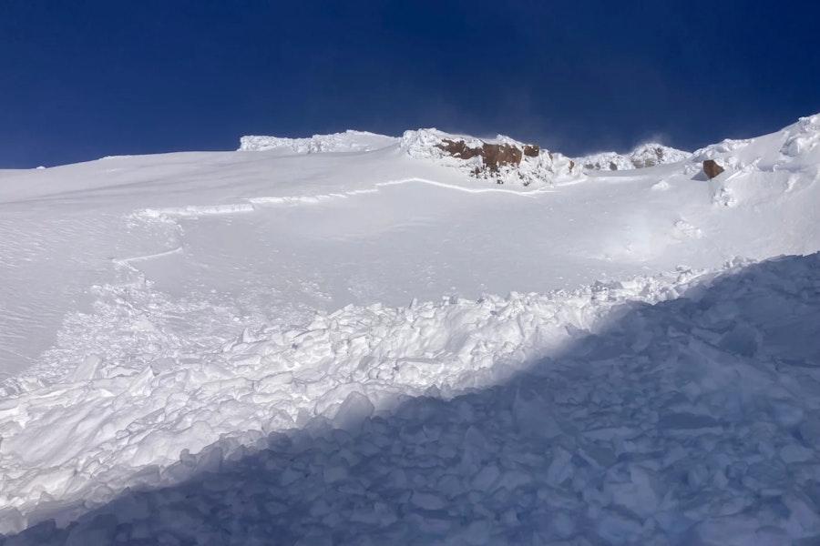 No injuries were reported, though the roughly 50-meter-long wind slab certainly presented high levels of danger. The full observation reads, “Avalanche triggered whilst skinning. Four members of party partially buried. One member buried with only face and arm free. One member completely buried with only hand protruding. Buried member had an airway excavated within two minutes. Everyone fully excavated within ten minutes.”
