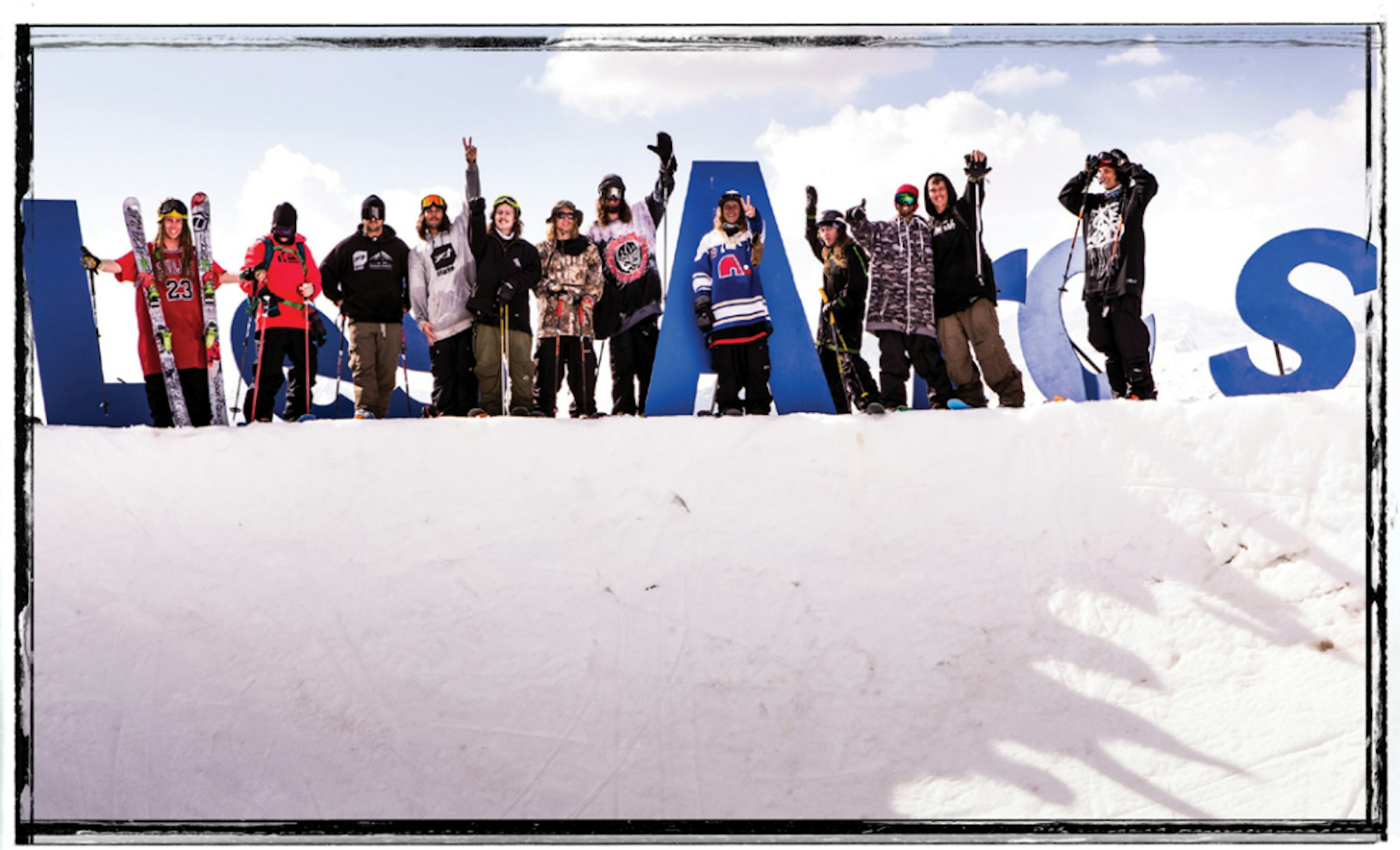 Morning rain in the village had amounted to a half-inch of snow in the public terrain park—a flowy run in the lee of a coulee-veined caldera that wore the last of winter’s paltry snowfall like a skimpy bathing suit. After a dozen park laps, we made our way back to 1800, traversing through jack pines and bracken that had popped up through the sublimating snow. The rest of the invitees had arrived en masse from the airport and were sitting outside the Boubou. We enjoyed blonde beers and the last of [Corey] Vanular’s Viceroys while the sky faded from vermillion to mauve in the west. As I looked between the smiling faces that lined the picnic tables, the crew finally made sense. The B&E would not be a contest between once and future generations of freeskiing aesthetes or even an anti-comp, which I believe is an oxymoron rife with its own queer implications. The strength of the B&E cast—and by extension the event itself—was also its only weakness as a concours: the notion that skiing is always better in the company of friends.
