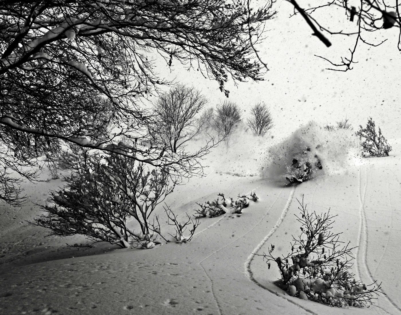 I’m fond of reminding people that the human genome contains some 20,000 genes, while a poplar tree boasts 45,000. What does it mean when the complexity of the human brain is governed by fewer genes than a block of wood? Perhaps only that when it comes to DNA, the traits of wisdom, stoicism and vigilance may be more hard-won than mobility. As it turns out, scientific research is now showing us that trees can learn and communicate through their roots via underground mycelial networks—and not only with trees of their own species. Since the root-mycelial connections function much like the neural networks of animals, skiing trees is like moving through something akin to a large-scale communal brain.