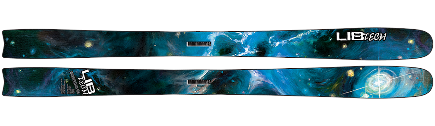 When it comes to all-mountain cruising and floating a bit of fresh, the Lib Tech Wunderstick 106 is a downright wunderful time. It employs Lib Tech’s Magne-Traction edges—serrated like steak knives—to give itself incredible edge hold, whether it be on fresh corduroy, chopped up pitches or steep, variable snow in off-piste chutes. Gradual rocker in the tip and tail, camber underfoot and a squared off tail (great for clipping climbing skins to) also help its turning prowess. “Carved like a champion!” exclaimed tester Thomas Lampert. “It has a low swing weight, allowing it to move around easily, and the edge hold is impressive,” added Adrian Bouthot. Those design elements combined with a galactic topsheet design are guaranteed to have you blasting off into another dimension this winter.