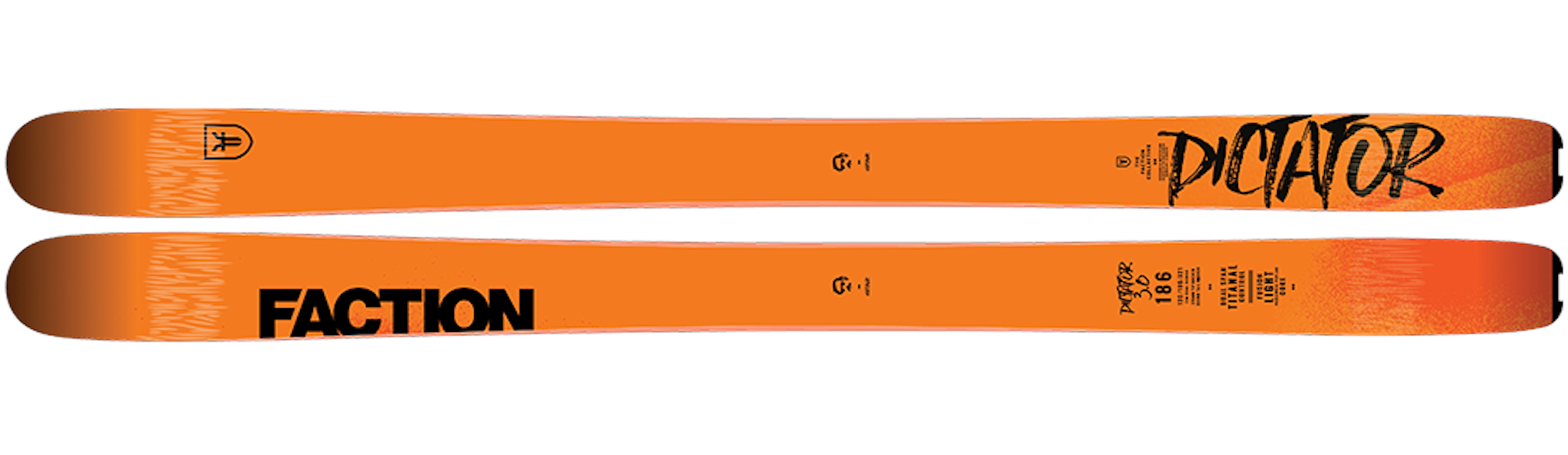 Skiers who love big lines in exposed terrain will drool all over the Dictator 3.0. Faction pairs light yet stable paulownia and medium weight poplar wood for an energetic ski that won’t tire you out. Dual Titanal layers are then added to power this baby up. A full traditional camber profile helps the ski dictate moves over tough terrain while its 105 mm waist allows it to excel in deeper snow. Dual turn radii—shorter in front of the binding for tight turns and longer in the tail for added stability—round out this ripper. Imagine this: four graceful hop turns down a skinny couloir with a straight-line exit to the apron. It’s made easy by the Dictator 3.0.