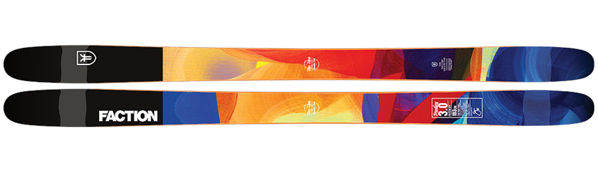 Don’t let the Faction Prodigy 3.0’s near symmetrical dimensions fool you, this thing charges down the mountain like it’s a chieftain leading a thunderous horde into battle. Its poplar and ash wood core strikes an ideal balance between stiffness and energy, while its dual-radius sidecut—less in front of the binding for tight turns and lengthier in the tail for added stability—ensures it can handle anything the mountain throws at it. “So much fun,” said Tae Westcott. “It’s super playful and I love the flex pattern in it.” FREESKIER art director Gunter Jones added, “It’s really controllable, perfect for skiers looking to crush any sort of terrain and launch every jump and hit in sight.”