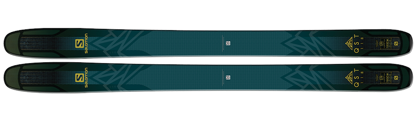 “Light, light, light like a feather,” said Steve Karczewski. “Take this playful, strong ski anywhere you dream,” noted Sam Taggart. Adrian Bouthot commented that these planks “hug the snow and provide a magic-carpet-like feel. Can and will pop at a moment’s notice and make slalom turns on a dime.” The widest of the QST series, the 118 is a true big-mountain powerhouse, with a fully rockered tip and tail to plow through variable snow conditions, a woven layer of carbon and flax that provides the strength of metal without sacrificing weight, a five-point sidecut for extra maneuverability and a Koroyd insert in the tip and tail for chatter reduction when you’re nuking.