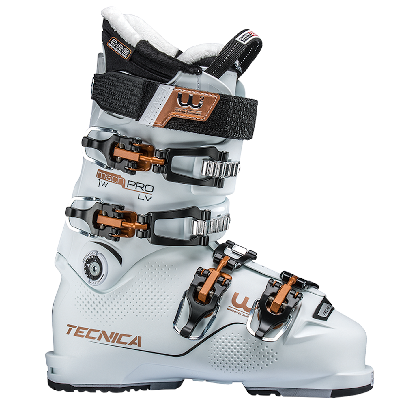 In order to provide the best out-of-box fit possible, Tecnica’s Mach1 boots come in three different lasts—98 mm, 100 mm and 103 mm—with the Mach1 Pro W LV catering to women with narrower feet. To further improve your foot accommodations, the boot’s customizable upper cuff allows for a 10-percent increase or 5-percent decrease in volume. The boot features a 12-degree forward lean, and its spine is 3 mm higher than previous Tecnica models in order to accommodate a woman’s natural stance, thus improving balance and reducing fatigue. With a 115 flex rating, the Mach1 Pro W LV is definitely geared toward skiers that seek a stiffer, high performance fit for their alpine pursuits.