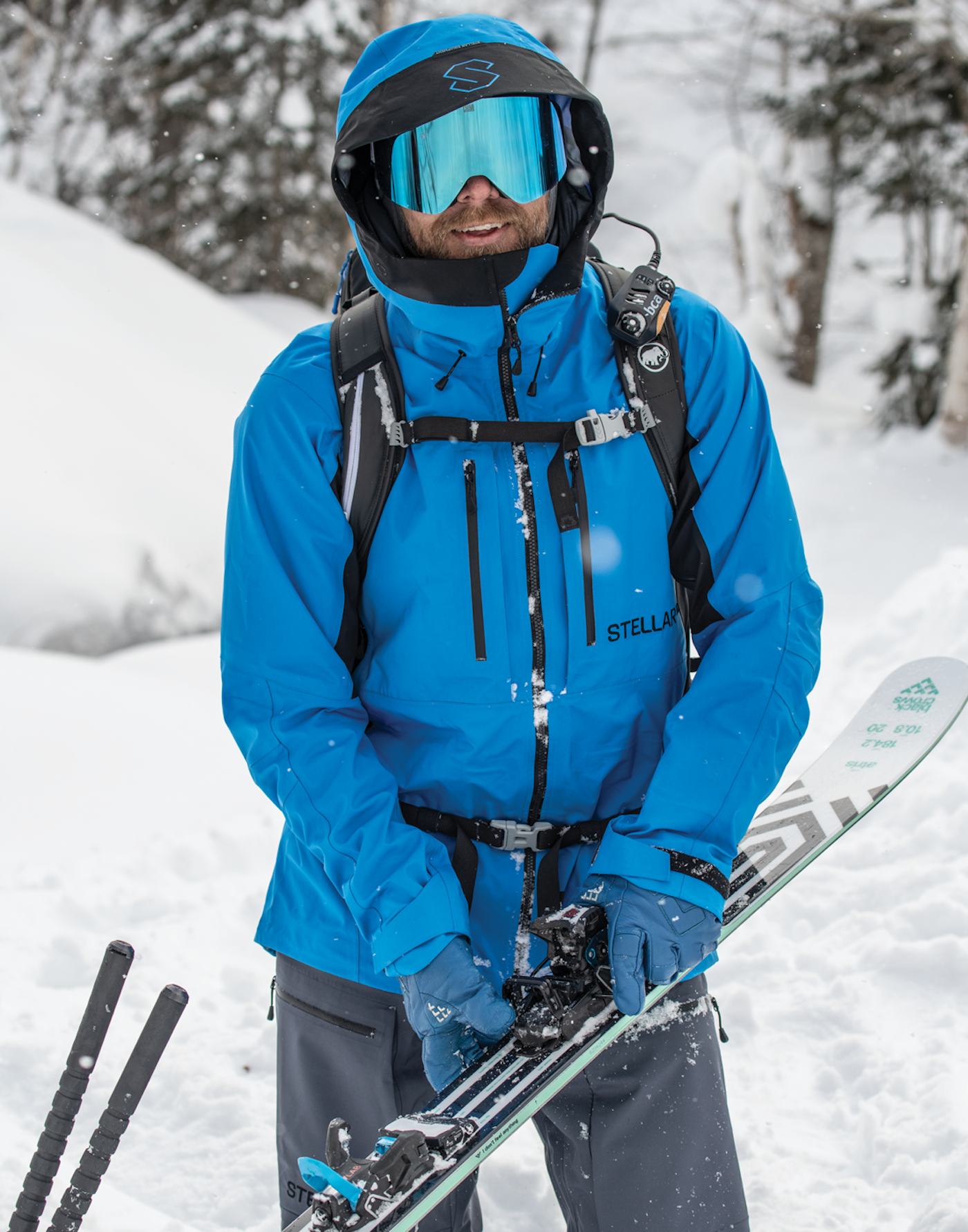 Stellar EQ is a Swedish apparel brand that’s been producing quality outerwear since 2015 and the Stellar Equipment Free Shell Jacket was built with backcountry freeskiers in mind making it one of the best ski outerwear pieces on the market this season. The jacket’s loose, relaxed fit (with a longer rear hem) matches the aesthetic that many skiers are looking for today. The shell is also jam-packed with technical detailing. Japanese-made, stretchy Dermizax NX three-layer fabric is the main component of the jacket, providing great breathability without sacrificing water and wind-proofing. This practically bombproof jacket—weighing just 755 grams in size large—ensures you’re more focused on the big-mountain line below your ski tips and less on the potential of it soaking through and chilling you to the bone. Beyond its core construction, the Stellar Equipment Free Shell Jacket offers nearly every feature possible: two well-placed, oversized chest pockets that are accessible while wearing a pack and large enough to store skins, a helmet-compatible hood with one-pull cinch strap to adjust fit, a jacket-to-pant attachment that works with all of Stellar’s snow pants and long pit zips under each arm that provide ample ventilation when you’re working hard on the uphill.
