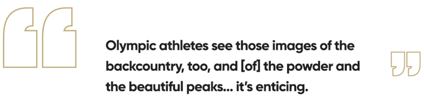 “I know what that cycle feels like when you’re focused on the Olympics and how consuming it is. When an athlete is not successful it’s a bit like, ‘Man, do I really want to put myself through that again?’ Olympic athletes see those images of the backcountry, too, and [of] the powder and the beautiful peaks, it’s enticing.”