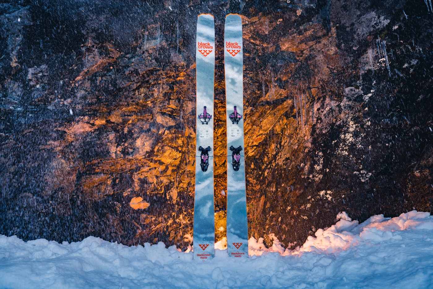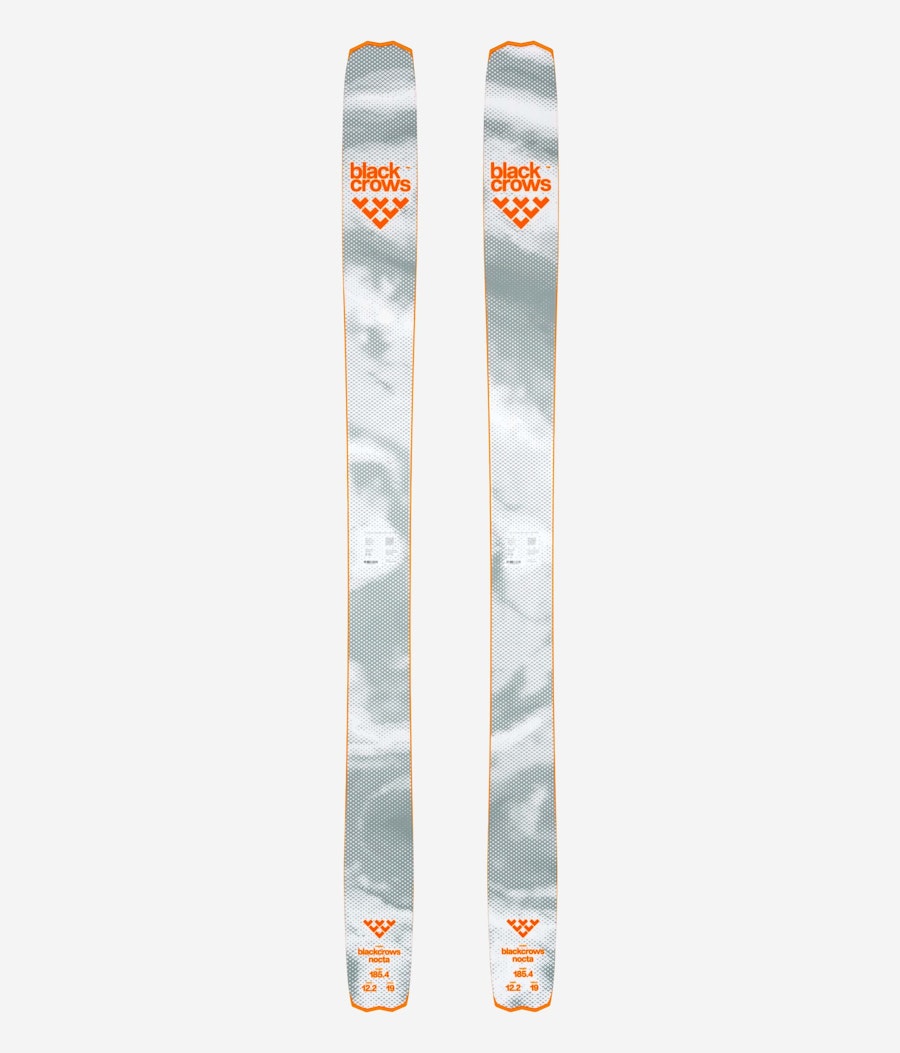 The Nocta ski is blackcrows powder plank of choice, measuring 122 mm underfoot. It’s a softer ski with a progressive shape that lends itself to easy turn initiation. The core is made of a blend of paulownia and poplar woods with fiberglass, creating a ski that feels soft and smooth with plenty of pop. The softer core is coupled with ABS sidewalls and a straight sidecut with minor camber underfoot. This combination delivers relative stability at speeds with playfulness in the pow. The Nocta is a great option for the more advanced rider seeking a resort or backcountry ski specifically for soft snow.