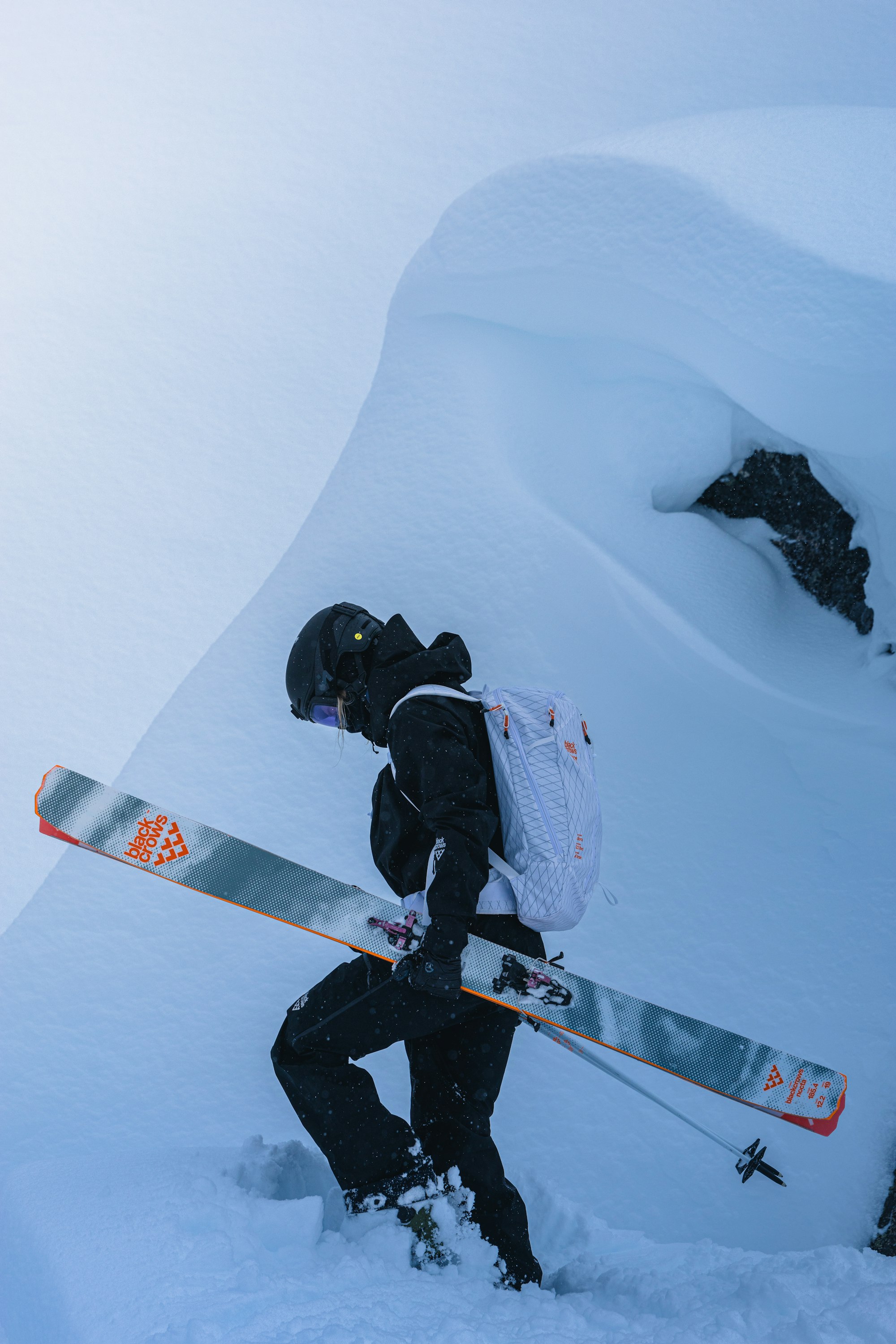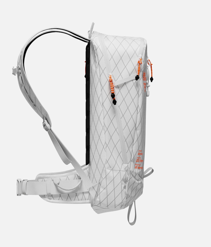 Powder Hunter Dorsa 22 X-Pac Backpack: The Dorsa 22 is engineered for the perfect storm. Constructed with X-Pac fabric for durability, it features a compact and snug-fitting design. The backpack includes a dedicated front pocket for shovel and probe, a full U-shaped opening for easy access to the main compartment, and concealed technical accessories, making it an essential tool for powder adventures.