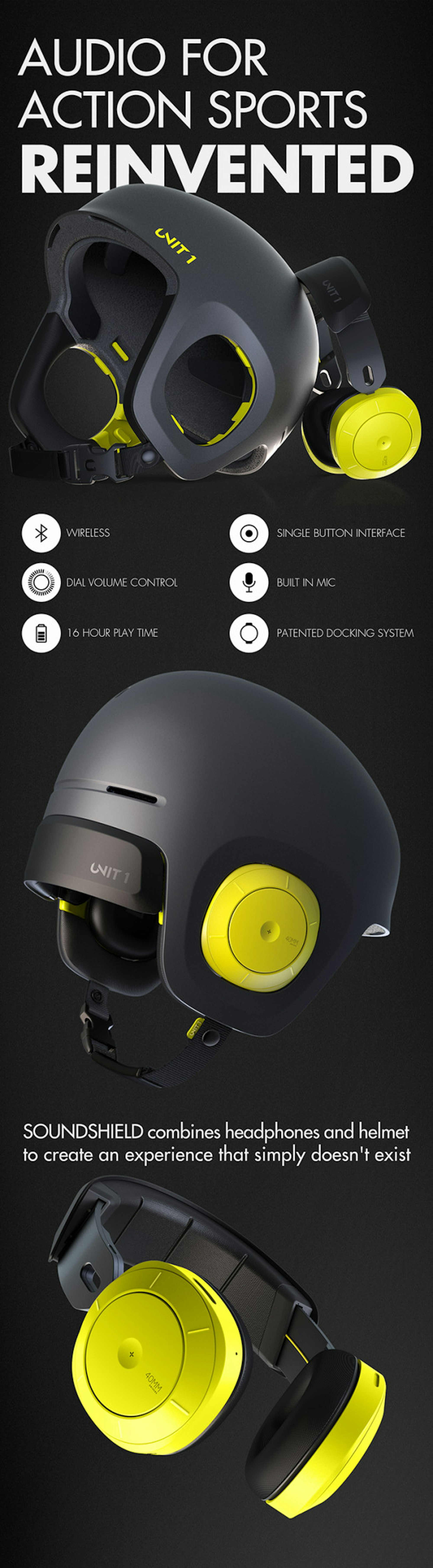The issue UNIT 1 tackled—creating a desirable helmet-audio combo—was complex. But the solution they came up with is simple. SOUNDSHIELD is made up up two parts, a certified-safe helmet and high-definition bluetooth headphones that work both together and separately like a winning team.