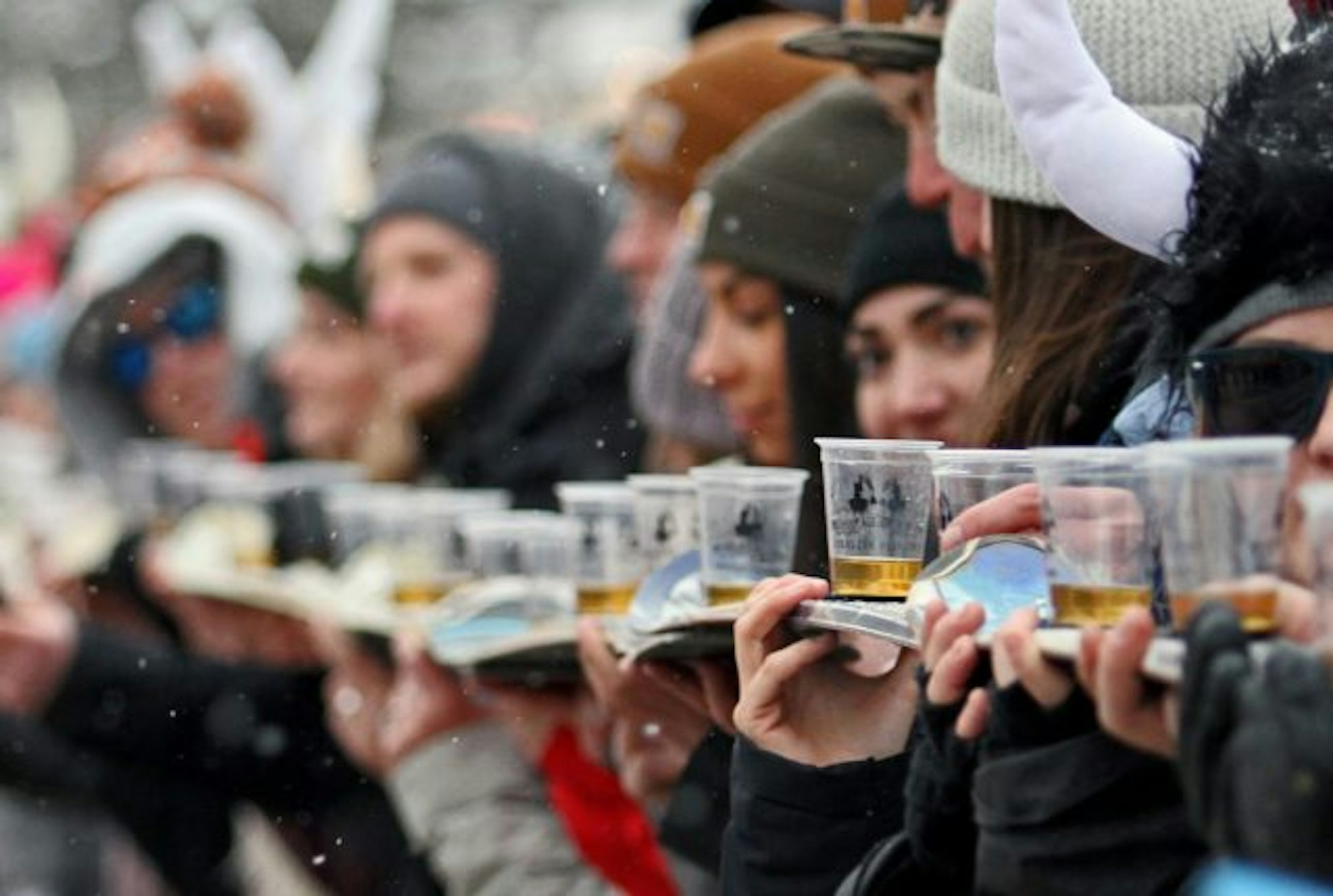 A whopping 1,234 people showed up to rip a 1,997-foot shot ski, filled with Hot Box Mountain Shot, a cinnamon whiskey that kept everyone nice and warm on historic Main Street. This effort topped Park City’s 1,191 participants, who utilized a 961-foot shot ski filled with beer. (Dang you, Utah alcohol laws.)