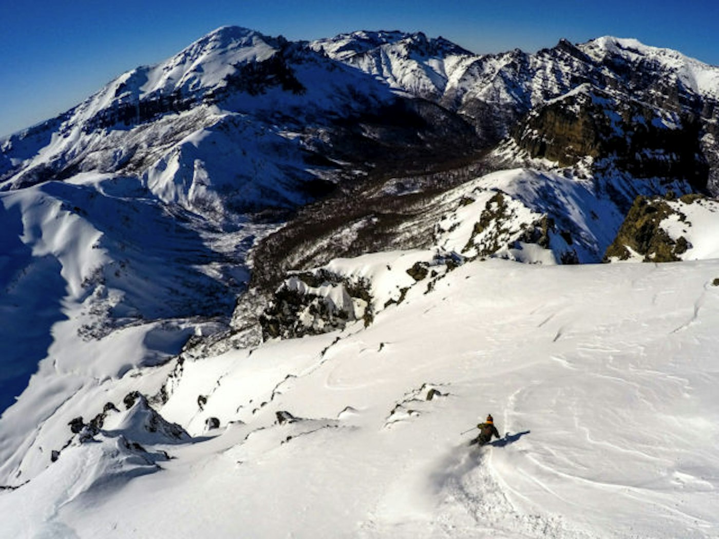 The crew, including videographer Txema Trull, are now settled in Argentina shredding the famous back bowls of Cerro Chapelco. The hike-to terrain found just outside of the resort’s boundary features narrow couloirs, cliff drops and fresh, chalky snow—an ideal combination for big mountain charging.