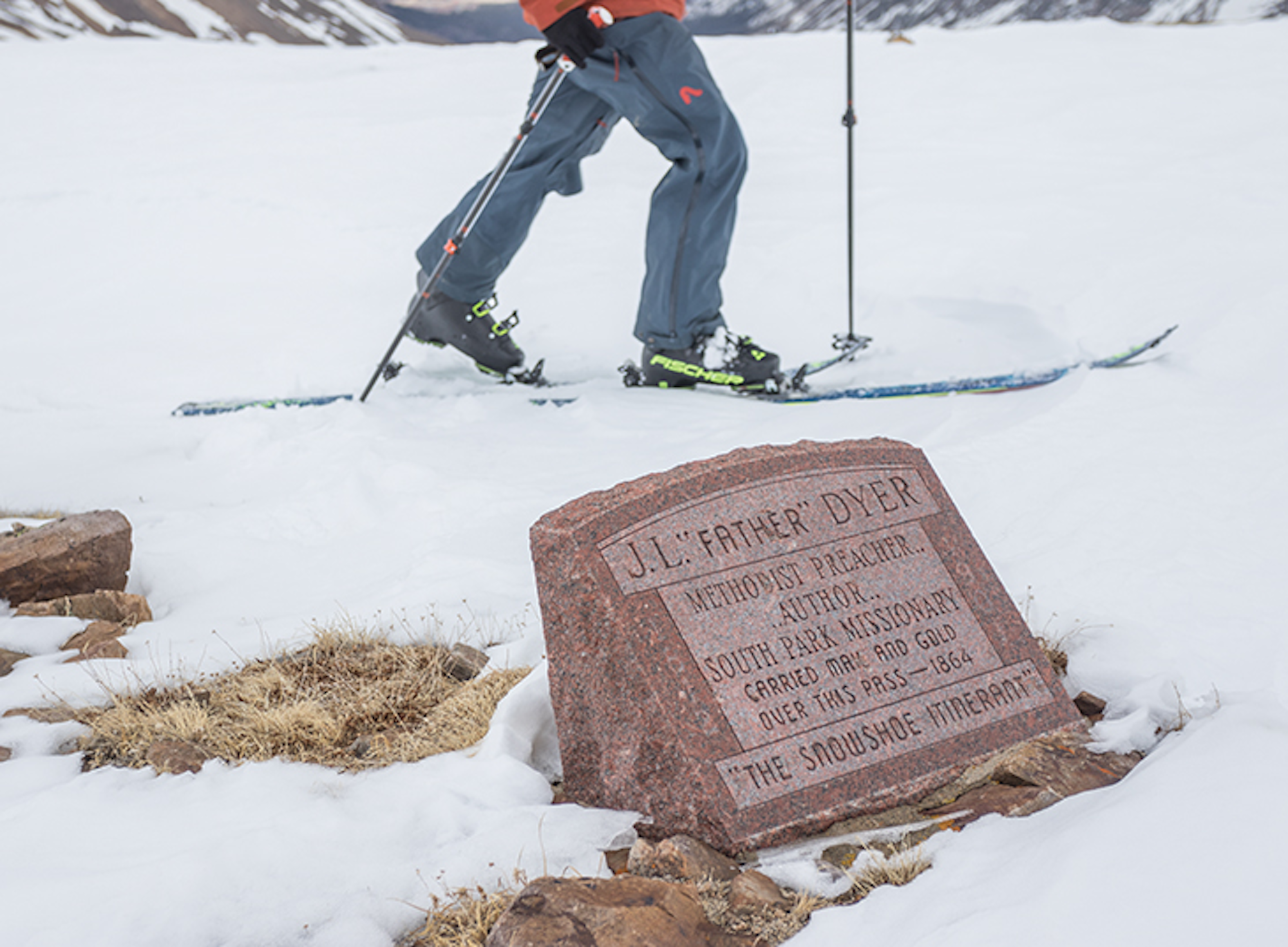 John Lewis Dyer is considered one of the 16 principal founders of the state of Colorado, and is enshrined via a stained glass portrait in the Colorado State Capitol building. He moved to Colorado, walking 600 miles from Omaha, Nebraska, in order to see the beauty of Pike’s Peak before his vision failed him. A Methodist minister, he walked another 100 miles to the Buckskin Joe mining camps to preach in the mountainous communities of central Colorado beginning in the 1860s. He condemned the common activities of gambling, drinking and prostitution. He is a legend of the Centennial State, and not for any reason relating to the subject matter of his sermons. Dyer was a skier, but, more importantly, an adventurer, and represents a collision of western history with modern day skiing that goes unnoticed by many of today’s backcountry recreationists.