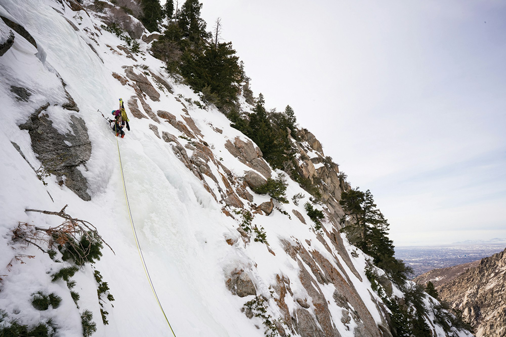 After Stairs Gulch, she had about 20 lines left to complete her goal. Last winter, she knocked off a bunch—the Great White Icicle, the northeast couloir of Lone Peak, the northeast face of the Pfeifferhorn and over a dozen more. By early April, just one line remained: the dreaded Ciochetti’s Ribbon at Alta. “It is one of the more terrifying lines. It has a really high pucker factor,” she says.