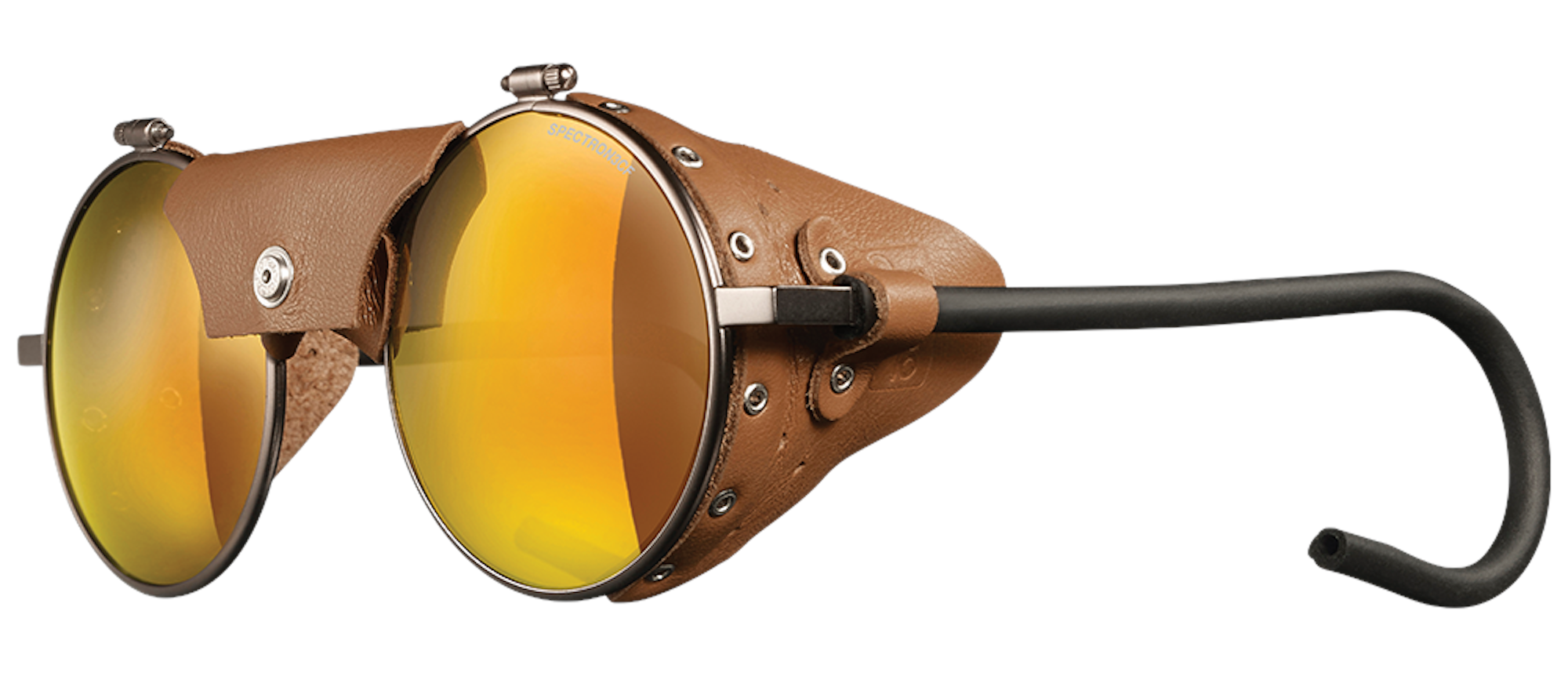 Handmade in France, these glacier glasses utilize durable yet beautiful lenses along with a leather nose-piece and side shields to block out lobster-burn-inducing, high-alpine UV rays. Rubber, hooked arms help them stay comfortably on your ears at all times. The “VC” now comes in three eye-catching colorways, to boot.