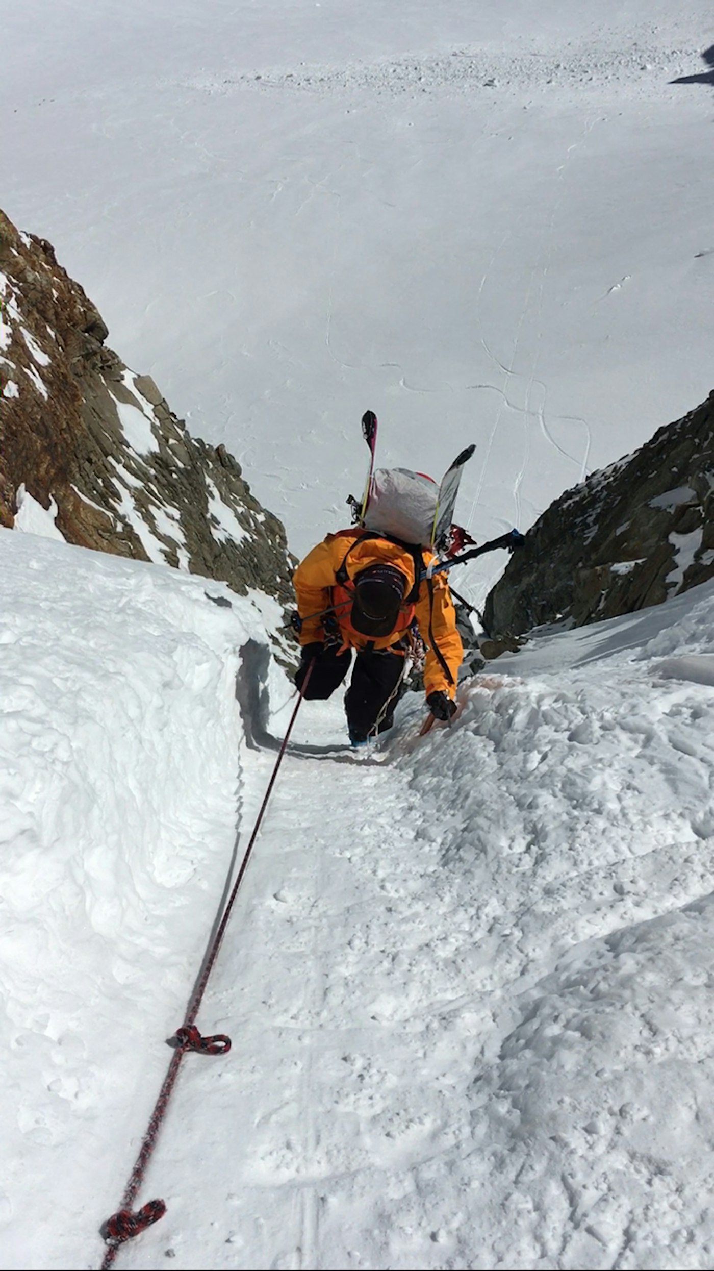 On top of having experience navigating through the mountains, itās a smart idea to be in good physical shape and comfortable skiing at high elevation. āI was in British Columbia at sea level for two months then went straight to 10,000 feet the first day [of our trip] and just got worked,ā Townsend recounts. āIād recommend that if you live down at sea level to spend a couple of days in Chamonix before going out to get acclimatized.ā