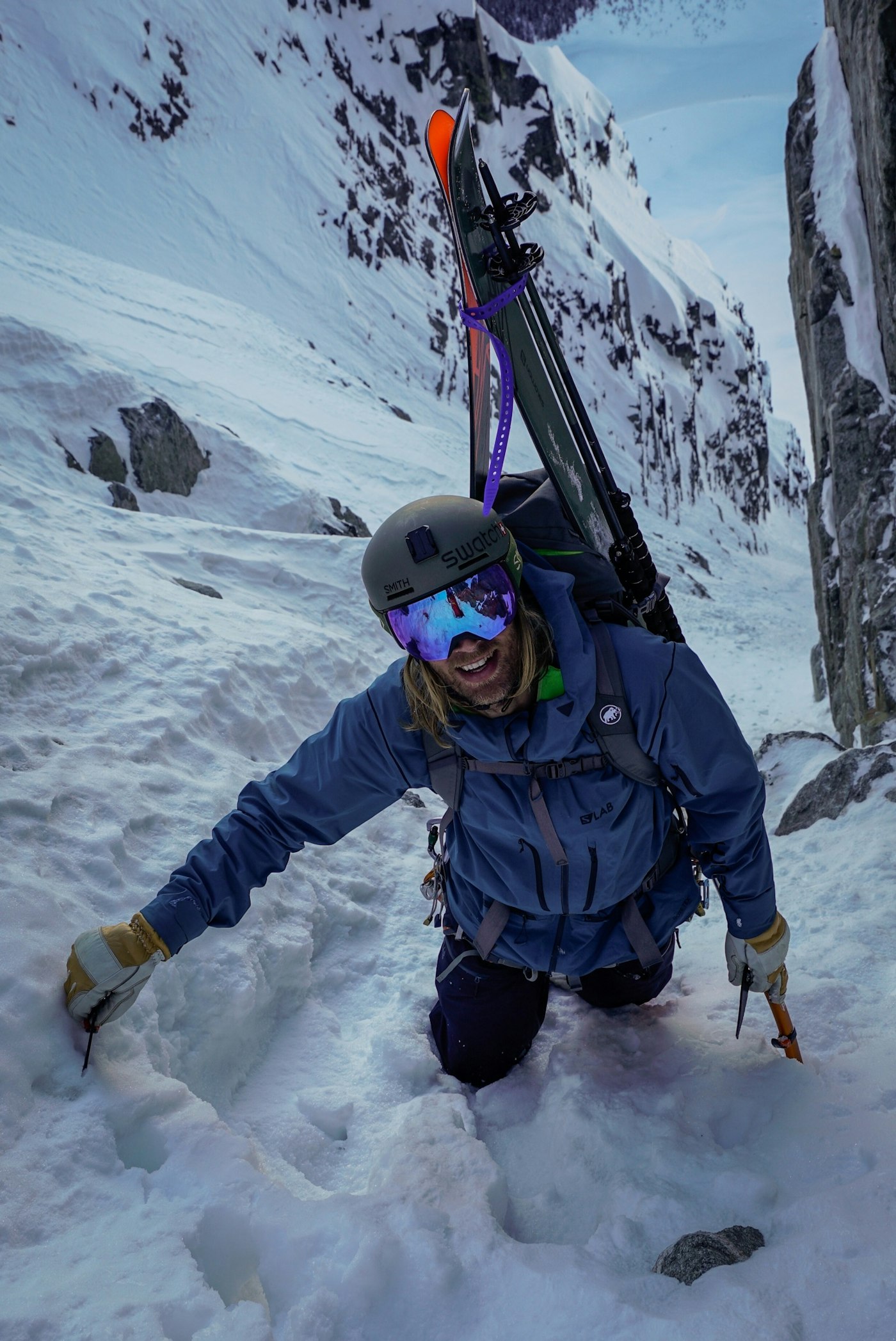 Townsend with a nervous smile as he approaches the top of the Joffre Peak couloir. PHOTO: Bjarne SalenFollow The FIFTY Project on Instagram