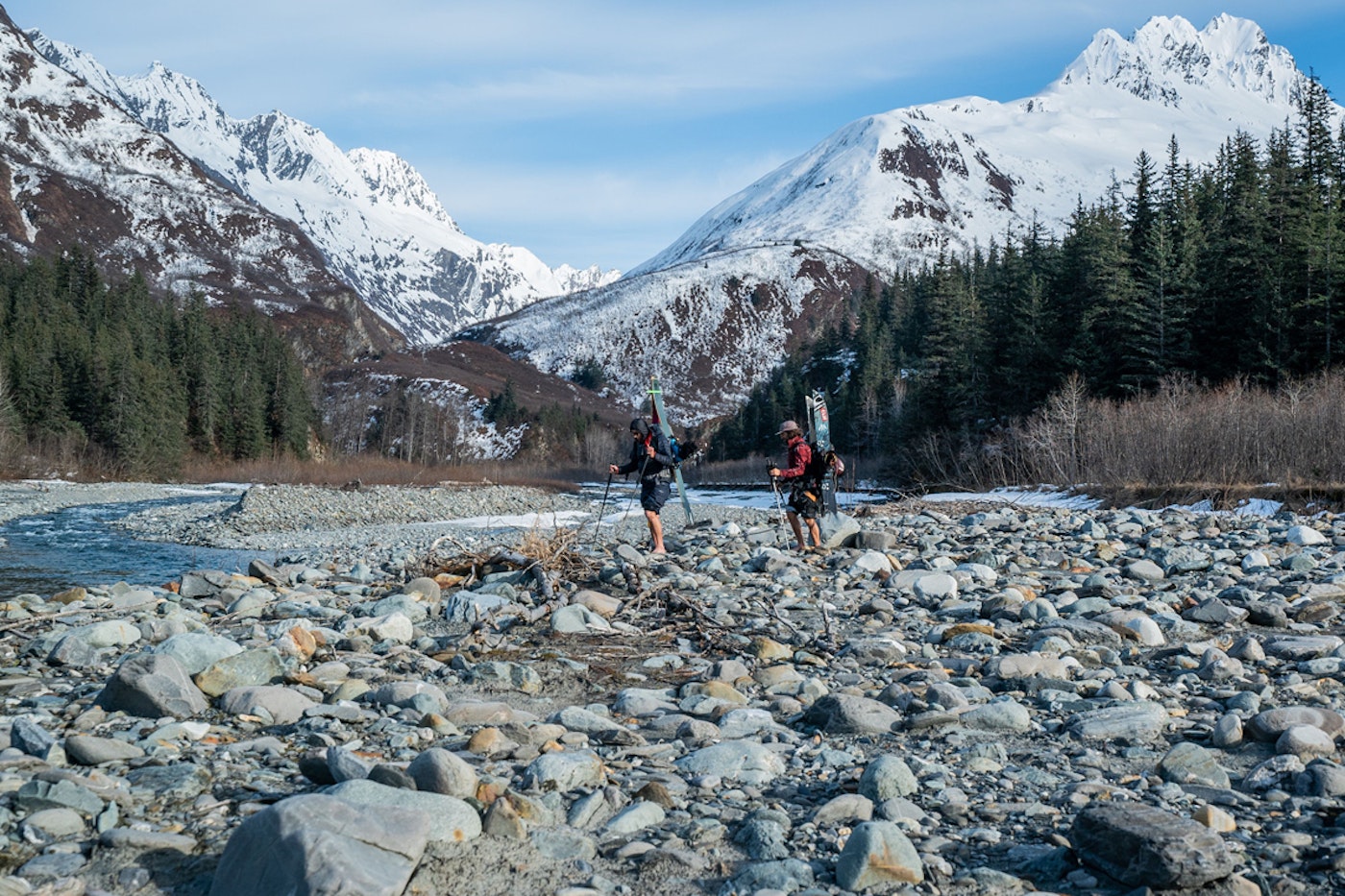 After turning around just short of Pontoon Peak’s summit in early March due to sketchy snow conditions, Townsend and Salén returned to The Last Frontier when they got the call from Jones to join him on a late-spring summit push. With very little beta and a whole lot of bush whacking, the trio made the long trek to the summit of Meteorite Mountain during a beautiful weather window; line 17 took over 17 hours to complete but the skiing made the slog more than worth it.