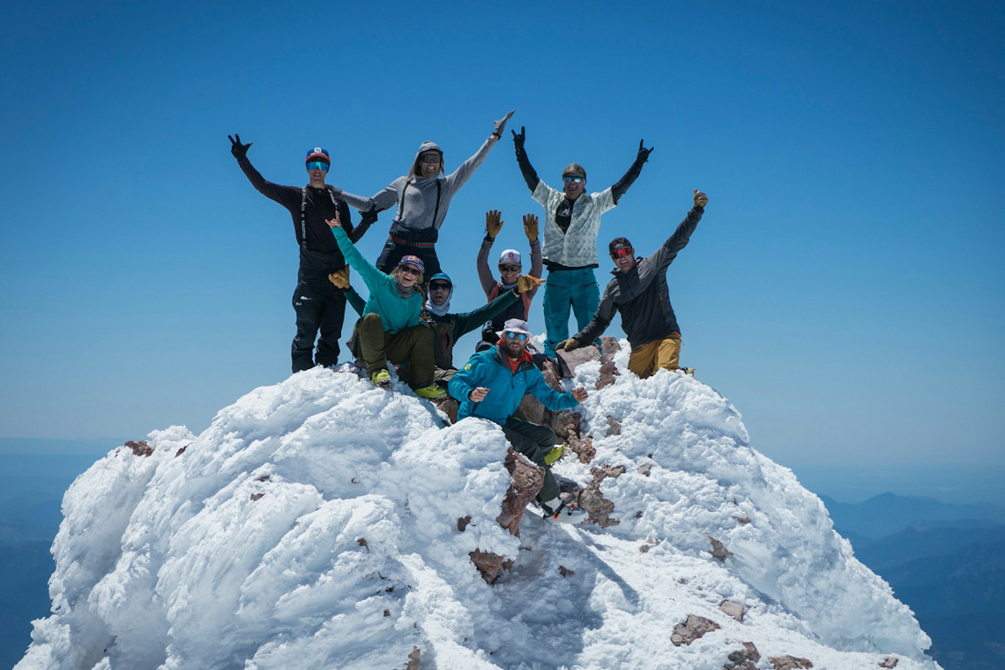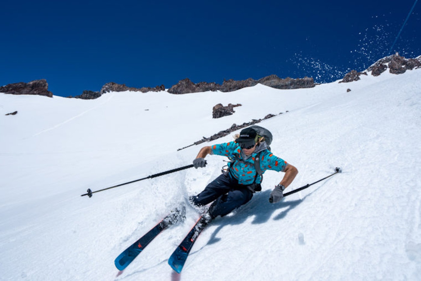 Joined by a motely crew of friends–Scott Gaffney of Matchstick Productions, professional skier Michelle Parker, childhood friend and ski patroller Kyle O’neal, mountain guides Jeff Dostie and Brennan Lagasse, journalist and ex-Telemark champion Megan Michelson and adventure photographer Ming Poon–Townsend and videographer Bjarne Salén set out on line 21 and the last line of the season. What Mount Shasta may lack in technical difficulty, it certainly makes up for in its 7,000-foot climb and, subsequently, 7,000-foot ski on delectable spring corn in picture-perfect conditions. High fives, smiles and Hawaiian shirts were no shortage for this late-season mission.