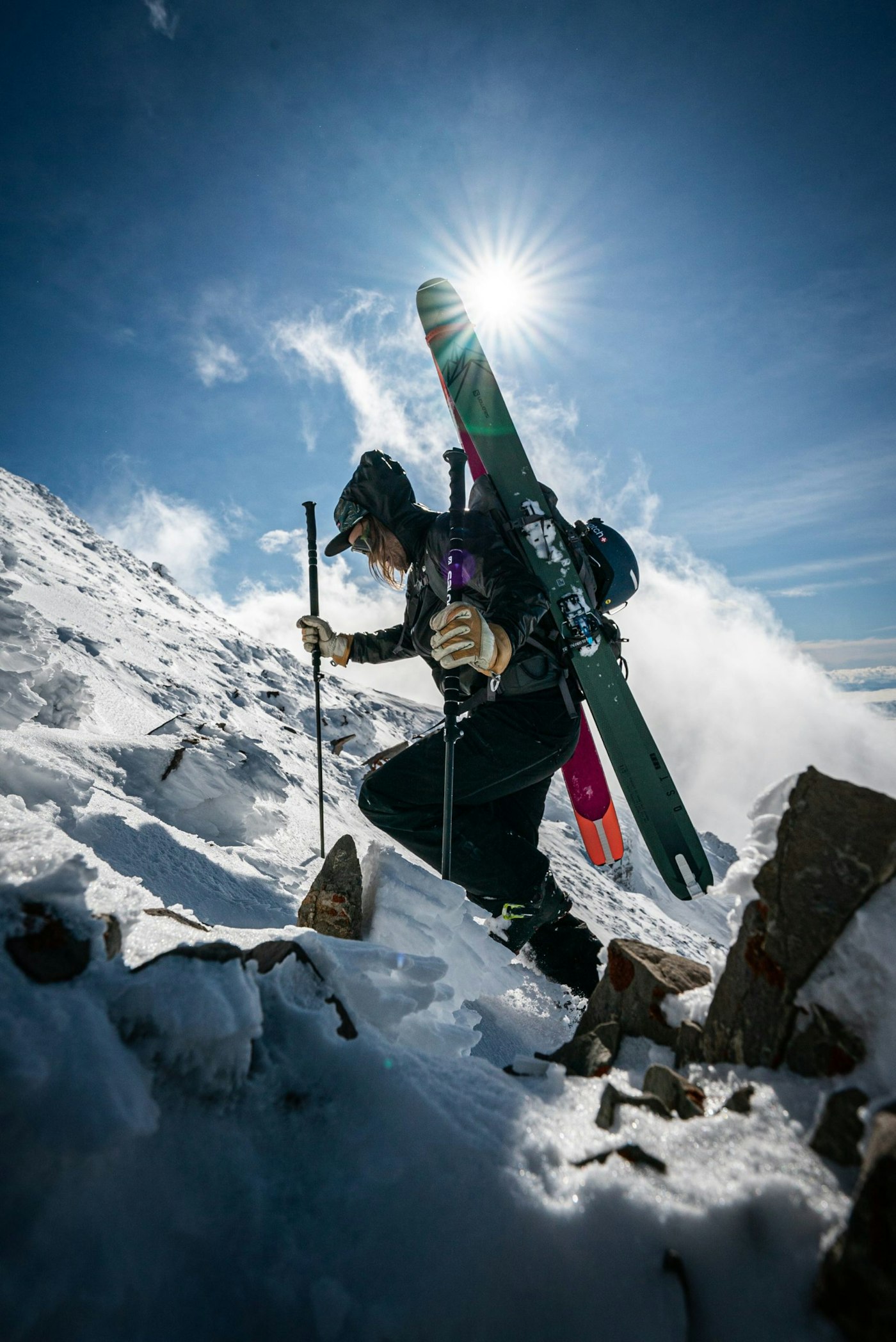 Joined by Utah locals and fellow Salomon teammates Drew Peterson and Mali Noyes, the Cold Fusion crew is greeted with sunny skies and uncharacteristically stable avalanche conditions for a joyous and relatively worry-free expedition. Despite a bit of bushwhacking to find the trailhead, letting ex-cross-country skier Noyes set the uphill pace and a few rocky turns at the top, Townsend chalks Cold Fusion up as a resounding success for episode 22 and line 21 of his attempt to ski all 50 Classic Ski Descents.