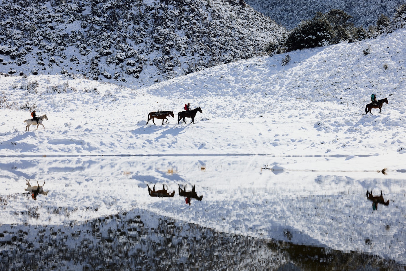 I’m still unsure why we pushed so hard during those days. We didn’t necessarily need to climb and ski thousands of meters for the film, especially considering the Kiwi conditions. But there we were, starting our ascent at 5 a.m. beneath the moon and returning at 8 p.m. under the stars. It was mainly the shared passion for being high on peaks and ridges, cherishing the slight warmth brought by the winter sun as it traversed low across the Southern Alps. There was an unspoken motivation in the group, and perhaps we didn’t want to waste the opportunity of using horses to reach our destination; we felt indebted to them and ourselves, wanting to make the most of every minute.
