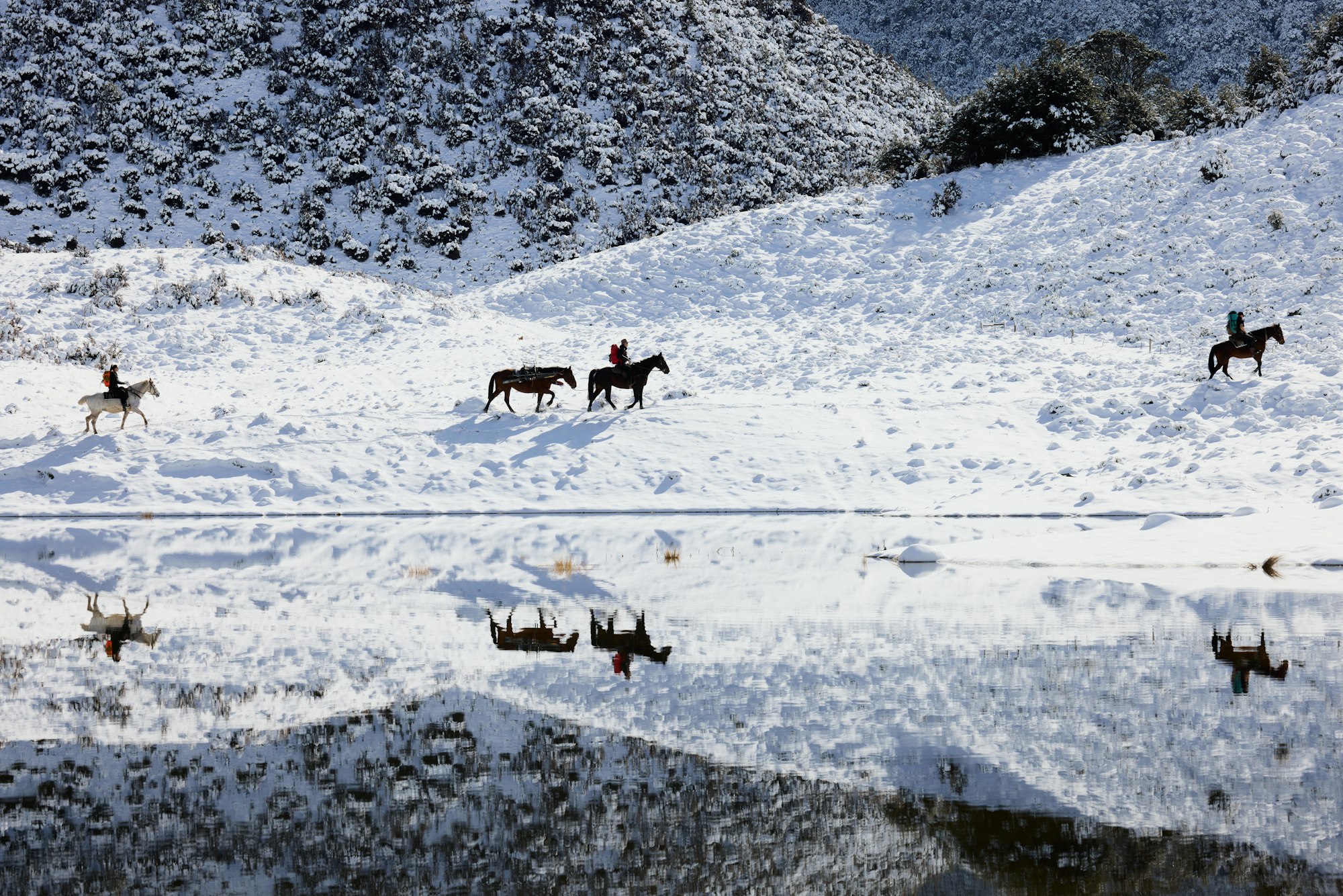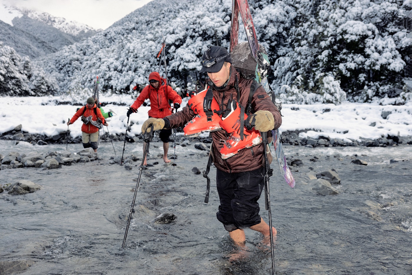Getting to remote lines such as these can be as complicated as skiing them. To accomplish their lofty goals, the crew needed to utilize multiple modes of transportation. Trucks, ski touring, horseback, and even barefoot river crossings; all were utilized in this incredible journey. The physical and mental strength required to complete such a voyage is frankly remarkable. Judging by the stunning photos taken by Matt Cherubino, the trip, while nothing short of grueling, was worth the toil. A true renaissance man who can write as well as he can ski, Craig Murray penned a detailed story of the first mission the crew embarked on, fittingly titled “Stampede.” This is Part 1 of 3 featured in the full film. Below you’ll find Craig’s written account along with a stunning photo gallery from the expedition into New Zealand’s terra incognita (terrain unknown).