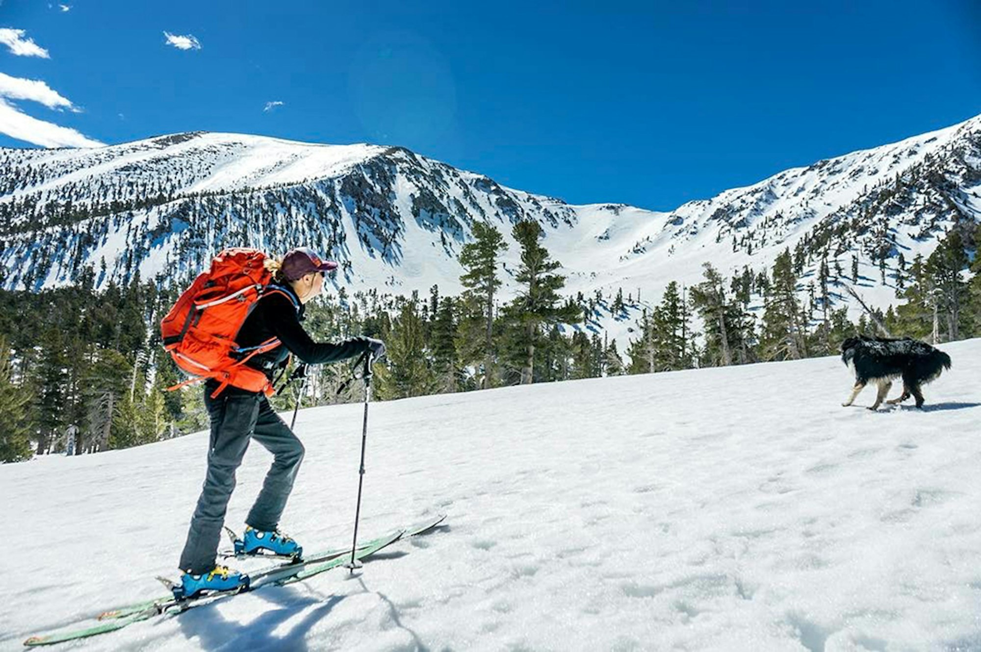 Brandt touring with her dog, Fred, in California’s San Bernardino Mountains. Photo: Jake Carpenter