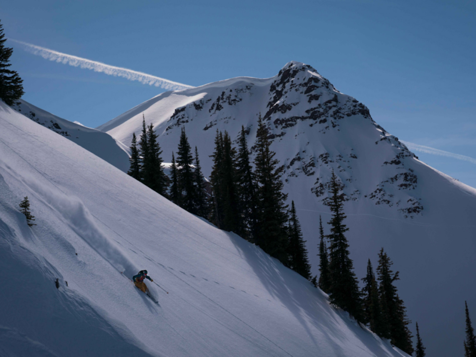 FREESKIER Editor-in-Chief, Donny O’Neill getting down in the Spyder Tenmile Anorak and Seventy Pant. PHOTO: Zoya Lynch