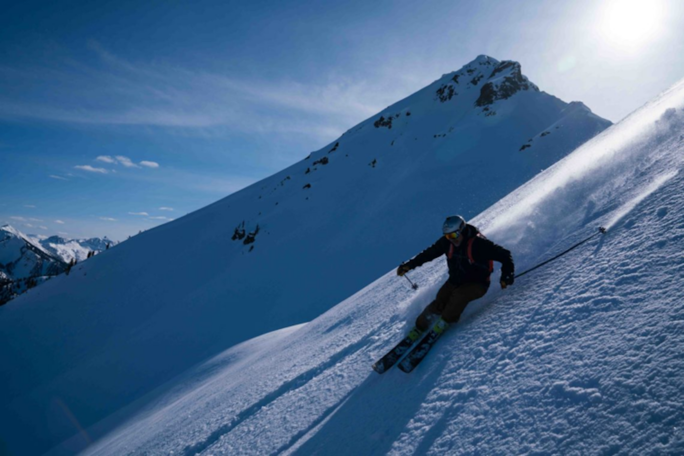 Alex Ferreira testing out the new Columbia Powder Keg III. PHOTO: Zoya Lynch.