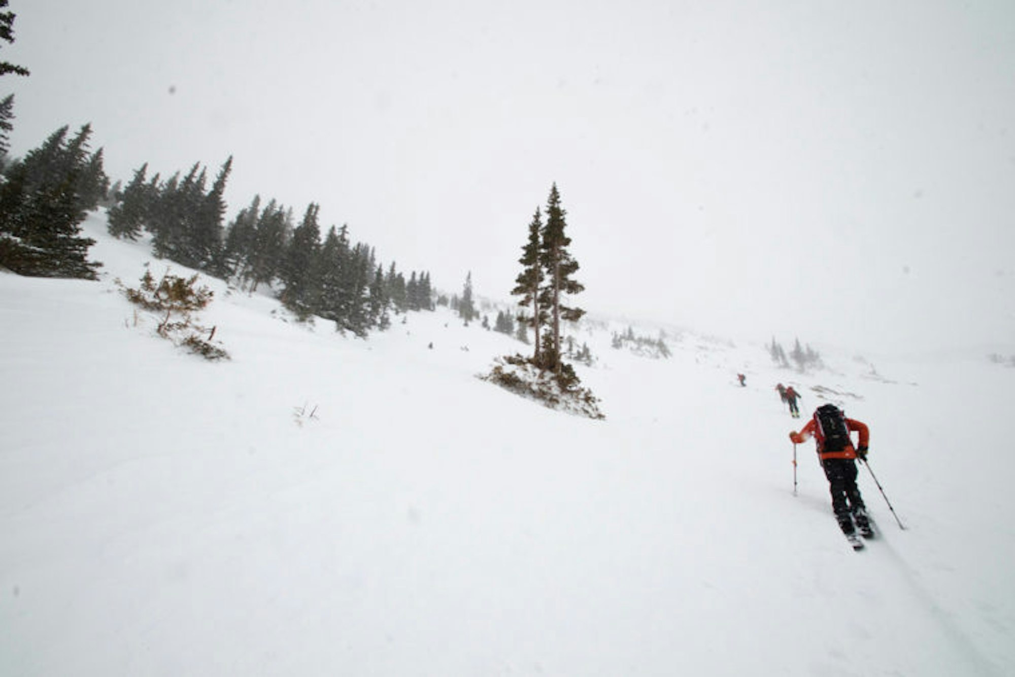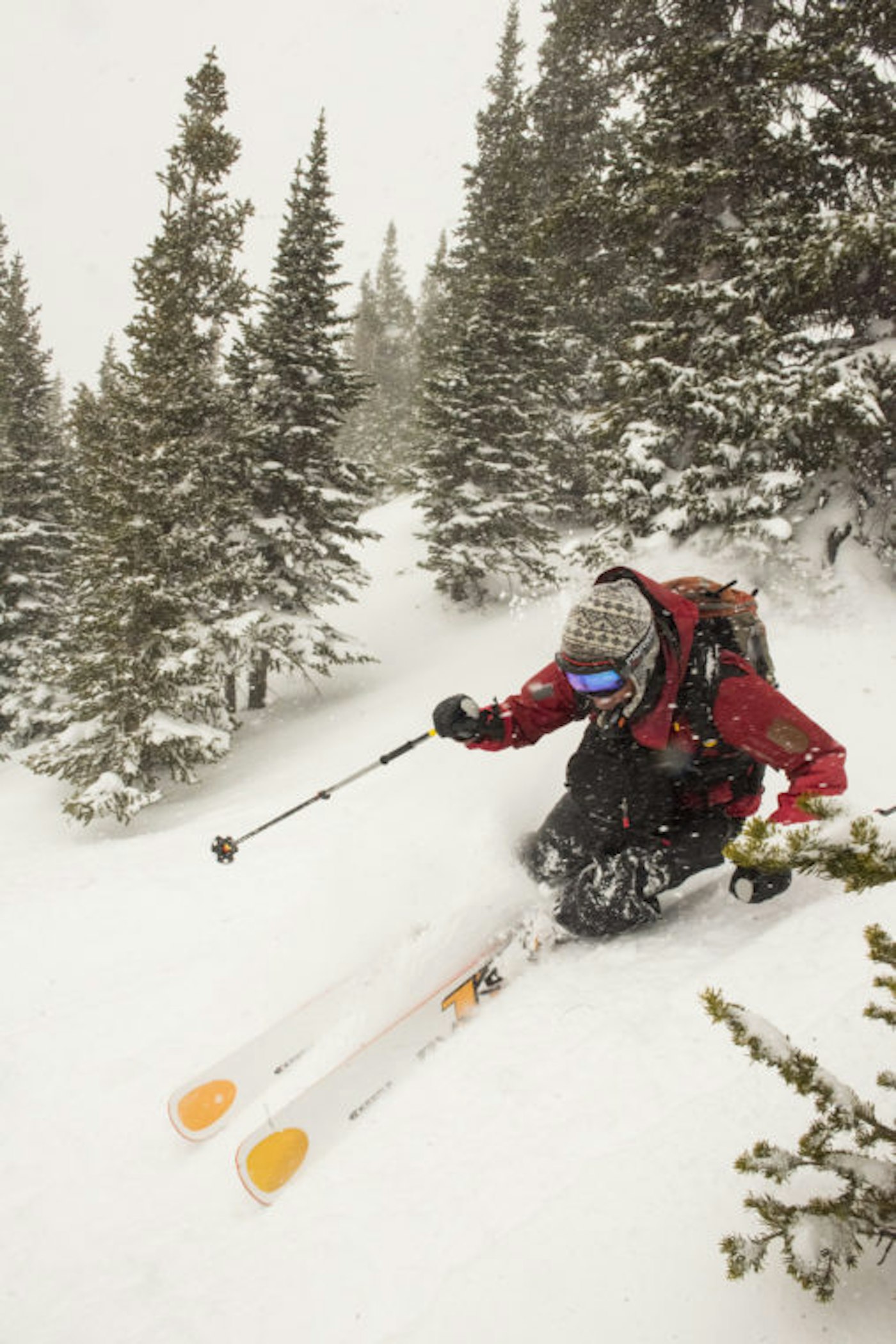 Amidst the storm, our crew of 15 testers toured and shredded deep powder in the trees all day long, reaping the benefits of a classic Colorado spring gale. The fruits of our labor will appear in this year’s Buyer’s Guide—the best backcountry skis of 2018-19—dropping in September 2018. Enjoy photos from the day, below, evidence of the darn near perfect conditions for backcountry testing.