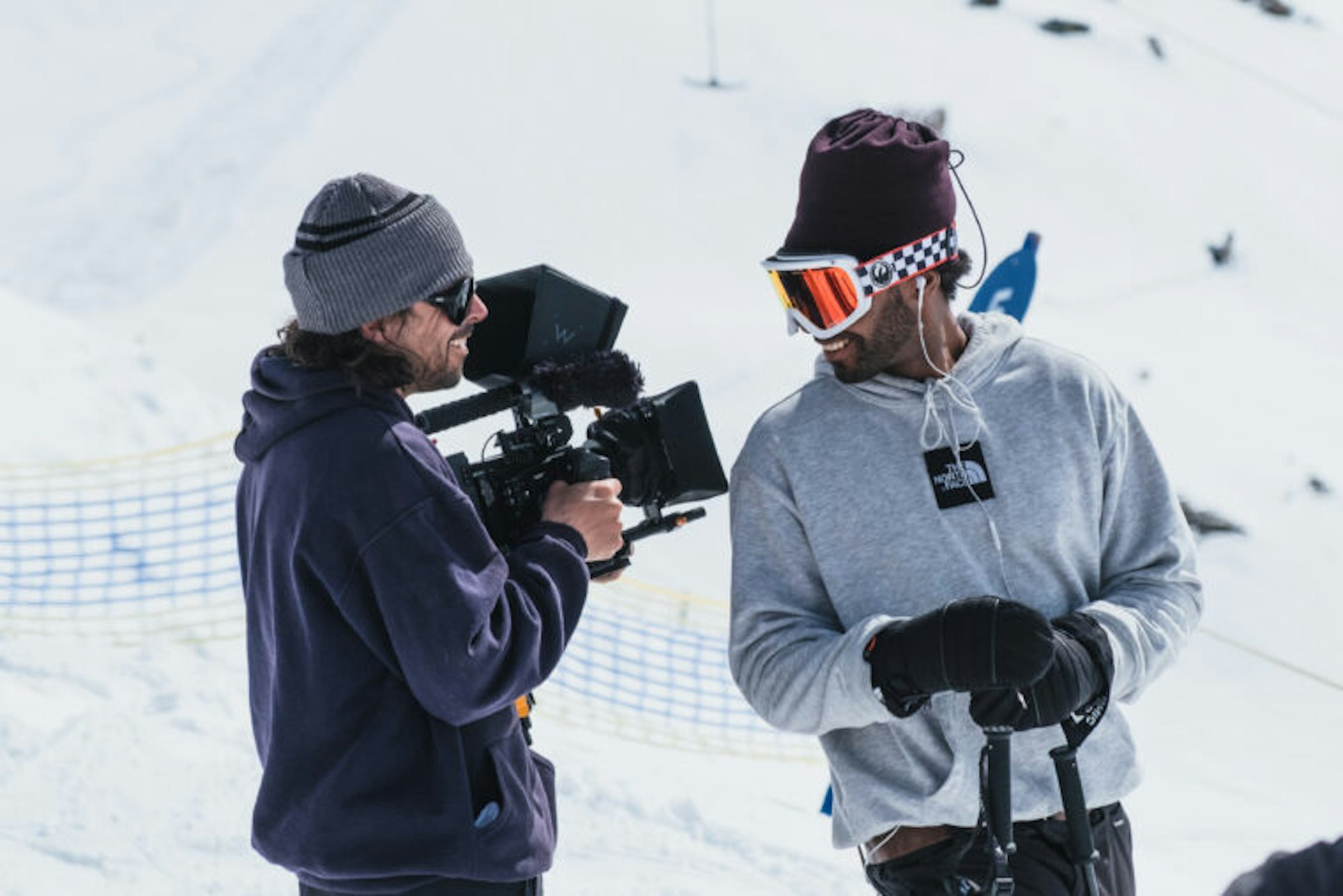 Mathias Kögel (left) and Dennis Ranalter are all smiles while filming for ‘Descendance’