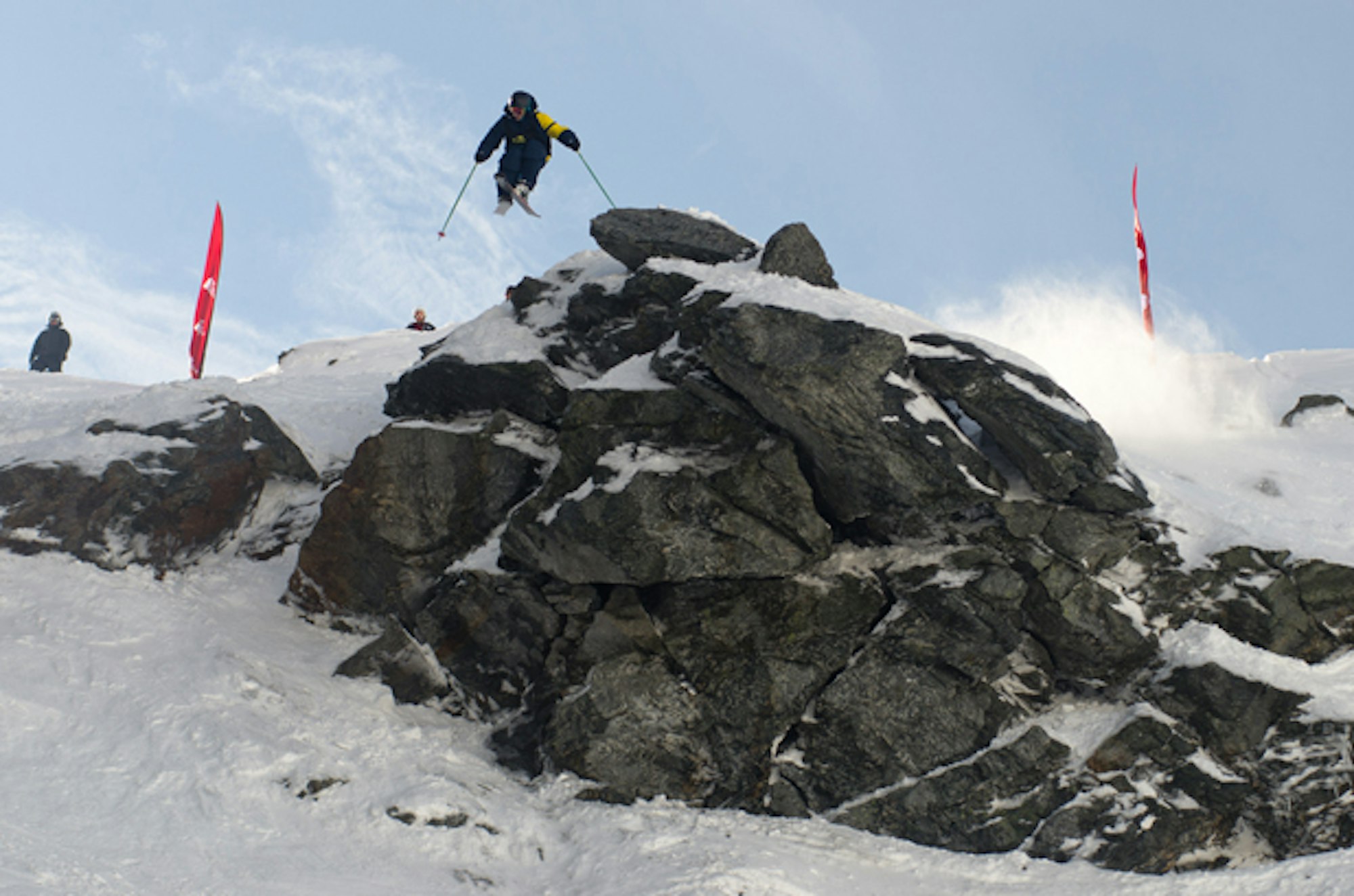 Austria’s Fabio Studer took the second place spot on the podium, skiing fast and incorporating a hand-drag 360 in his run. Charlie Lyons of Christchurch skied a technical run sans flaws, propelling him to third place.