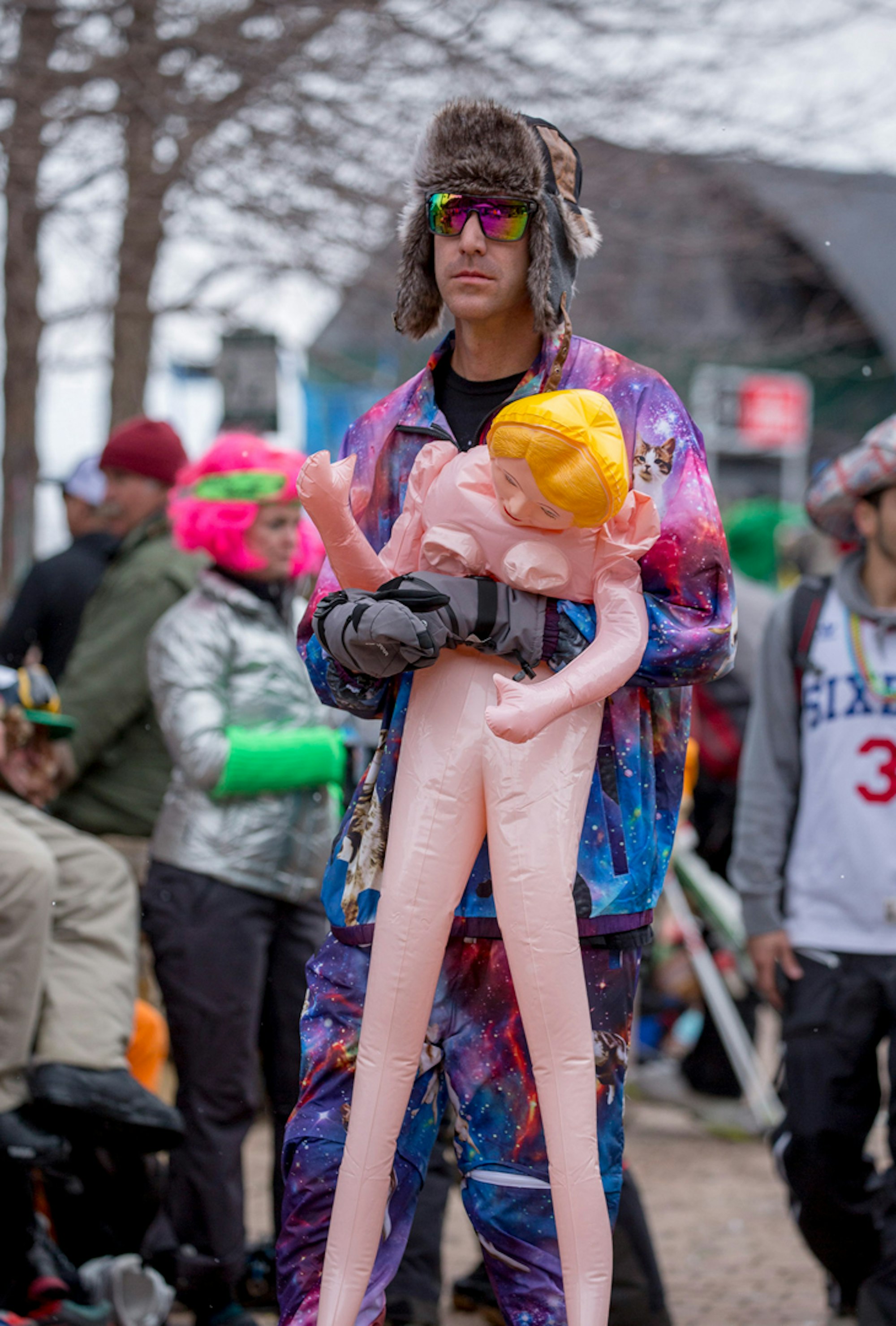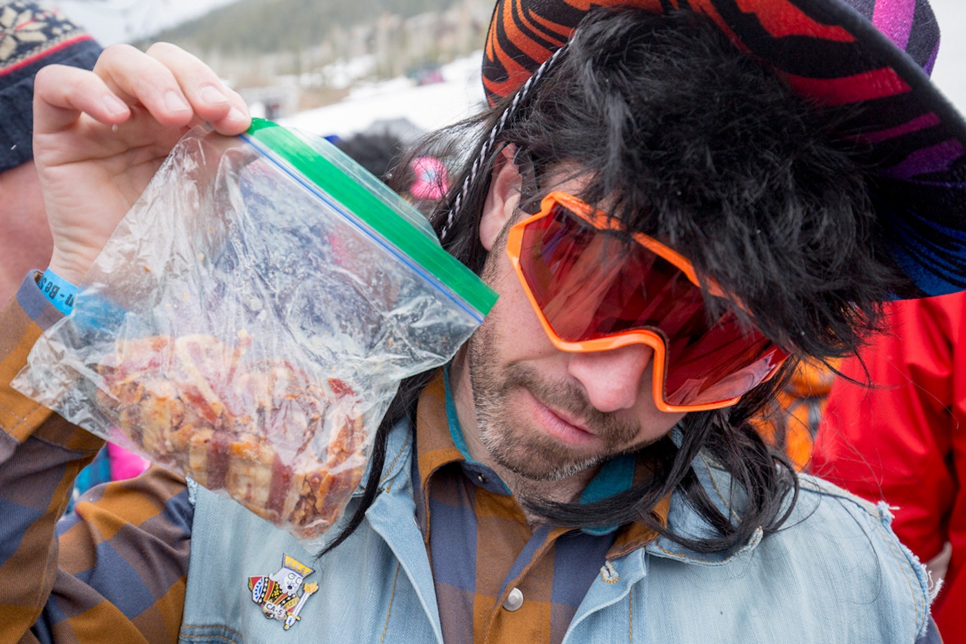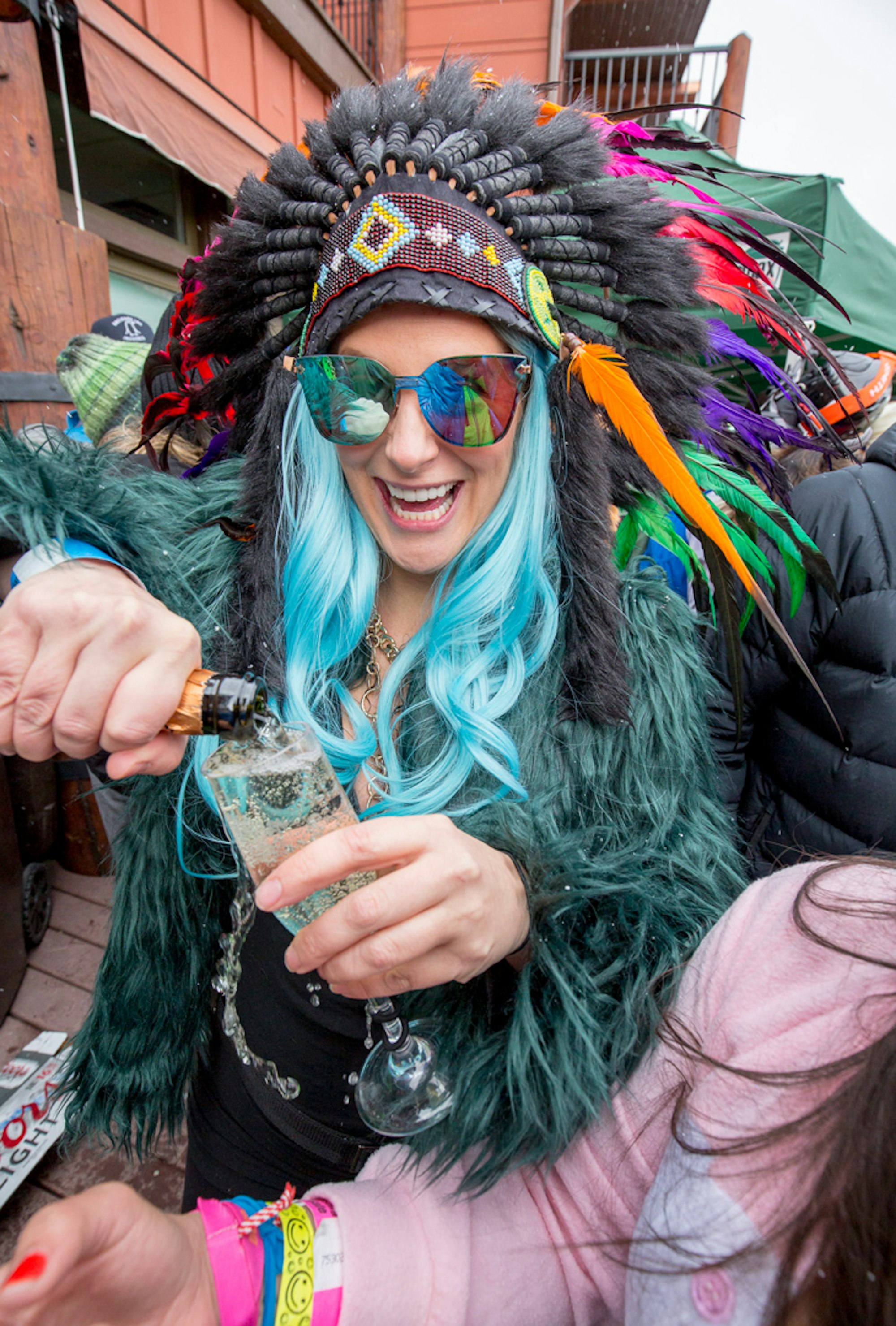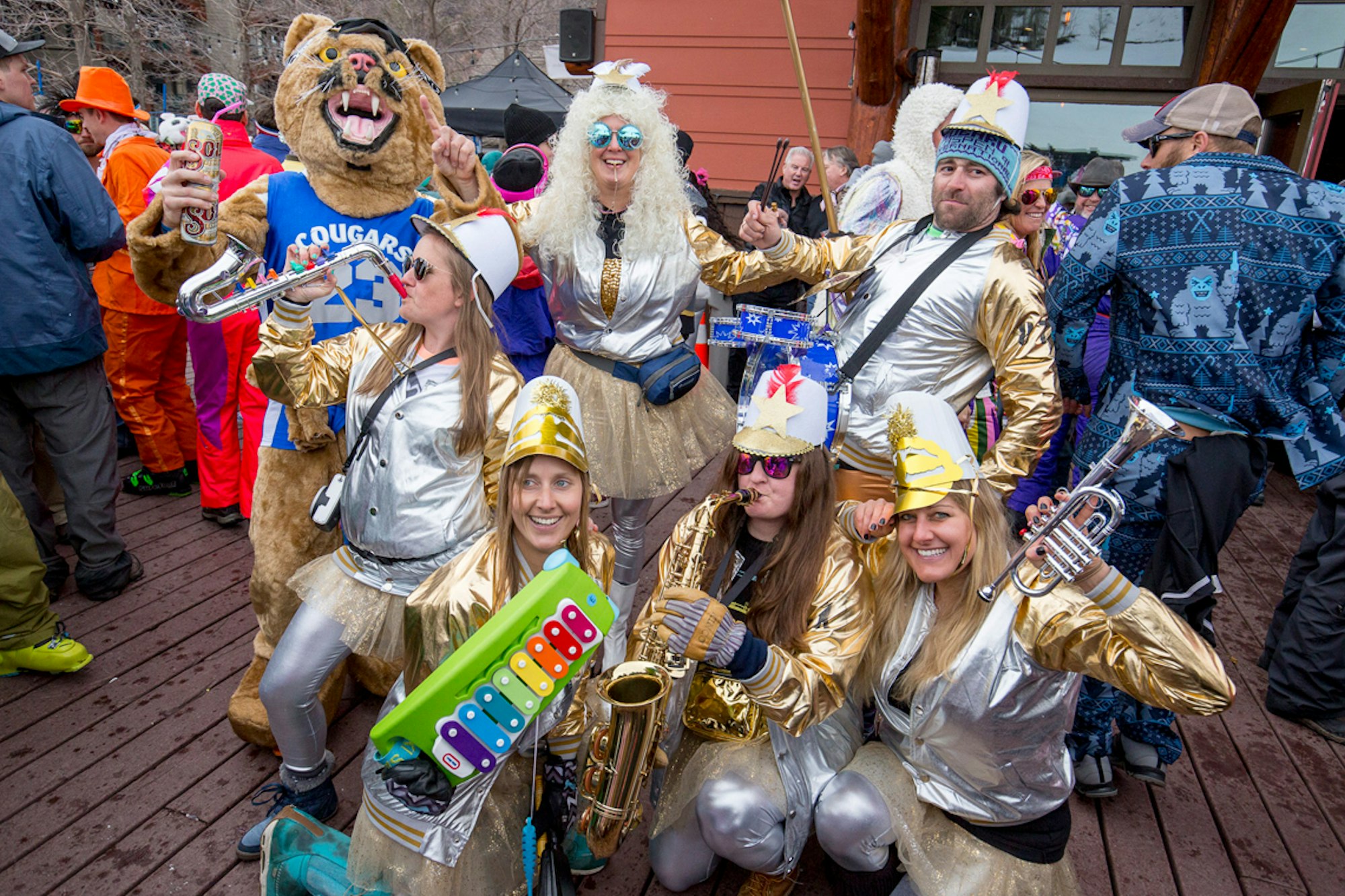 Bears, bunnies, kittens, dinosaurs, flamingos and myriad amalgamations of retro neon could be seen riding each lift, shredding every trail and imbibing on all the patios that Highlands has to offer. Though the bowl didn’t open due to dangerous snow conditions, the annual top-of-the-bowl party was moved to Picnic Point, where revelers gathered by Aspen’s “RESPECT” sign to celebrate another year in the books. Stories of pow days gone by and plans for the spring ahead were told in between group photo ops and swigs from an absolutely massive bottle of Rose.