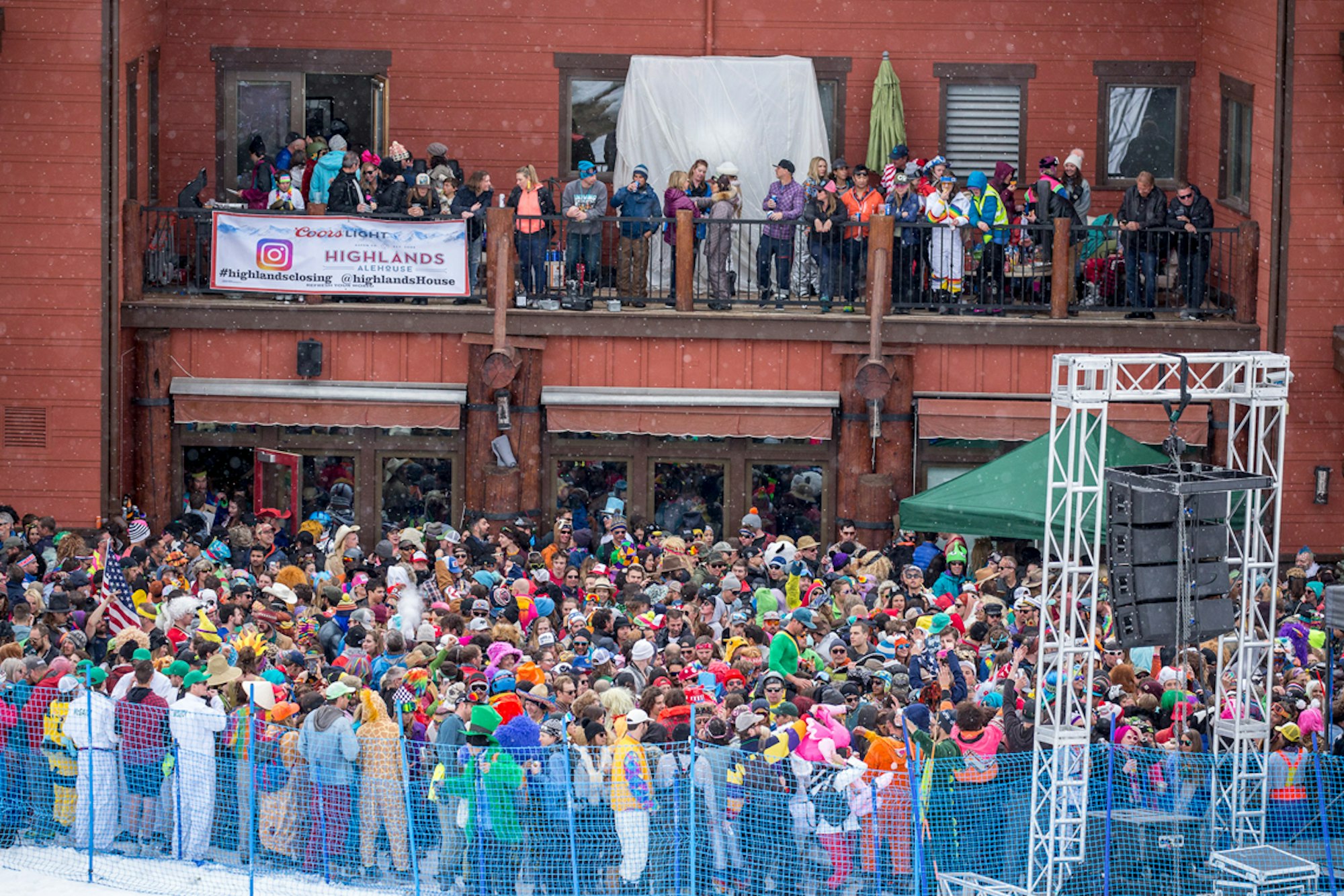 The hoots and hollers echoing all over the mountain were a sure sign that skiers were enjoying their last Highlands kicks of the year, and down at the base, sound was emanating from a growing mass of people gathering for the infamous Alehouse party.