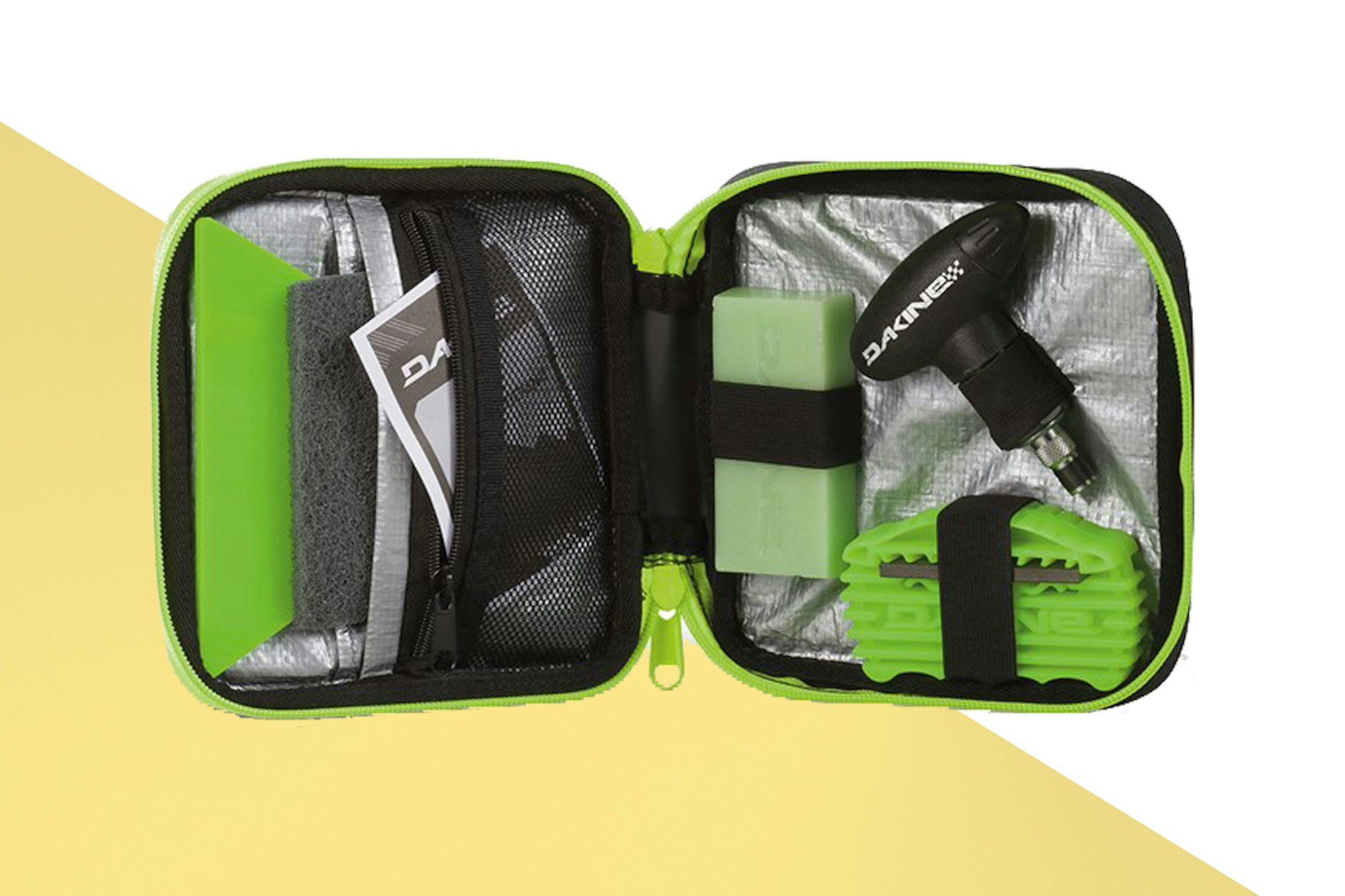 Traveling long distances means you don’t have your local ski shop to rely on if anything happens to your equipment. In lieu of cutting your ski day short because of a loose screw, bad wax job or other unpredictable mishaps, pack Dakine’s Quick Tune Tuning Kit for ski rehab on the go. Includes a torque driver with five bits and a 8/10mm wrench, edge tuning tool, triangle scraper, octane bar (for use on all temp wax) and a scuff pad.