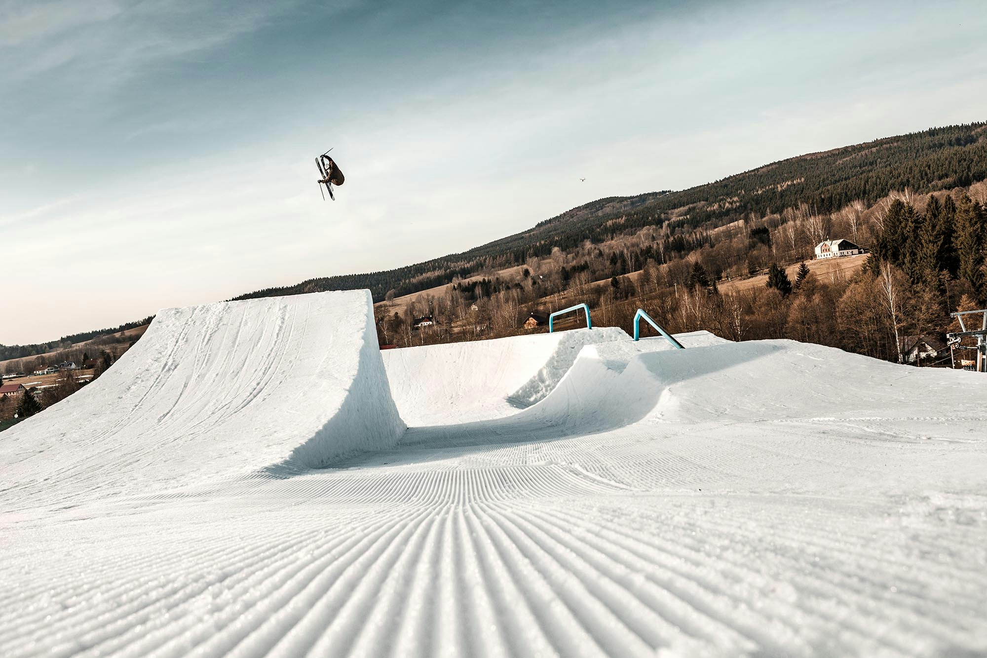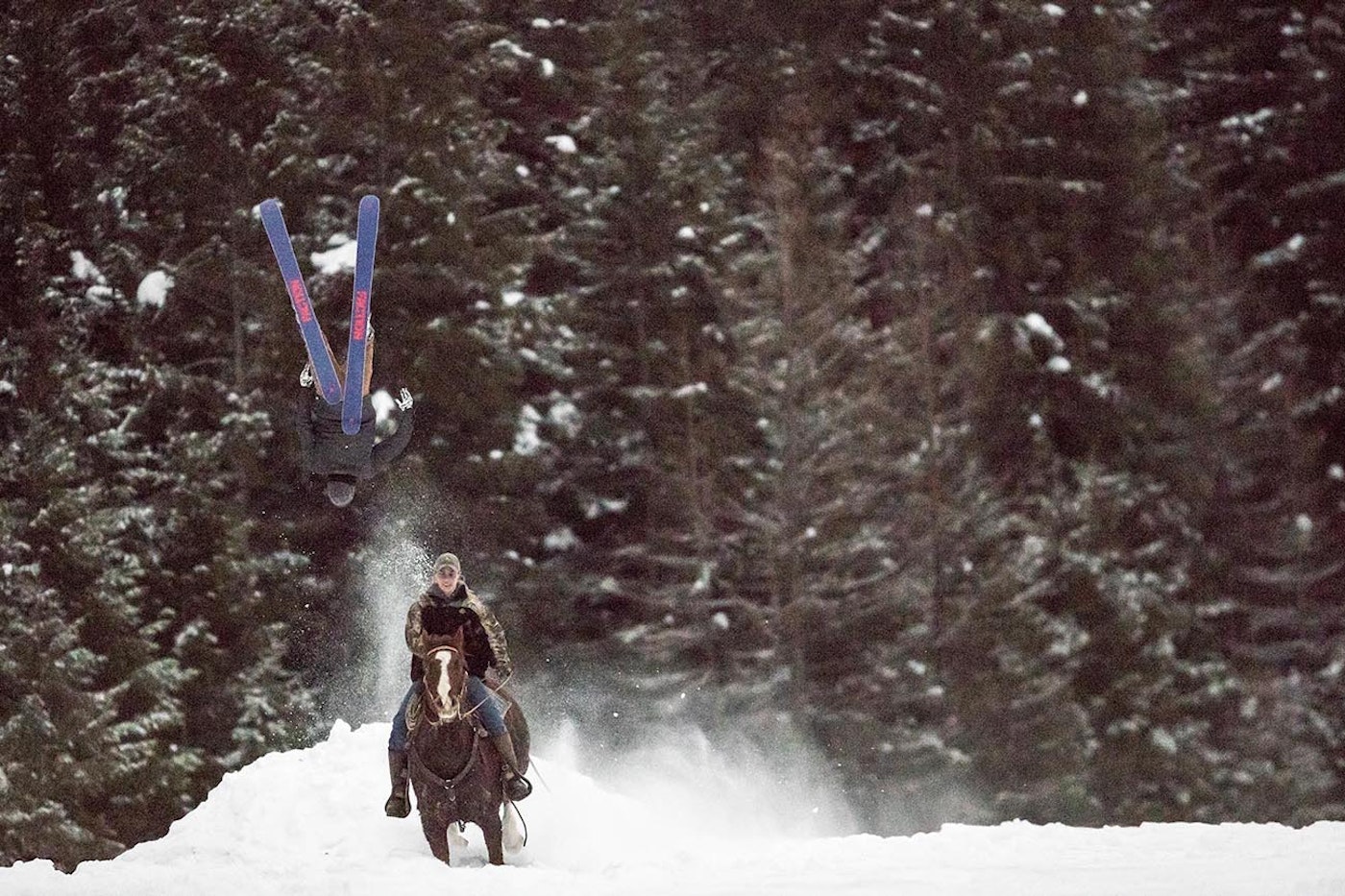 From the slopes of France we zoom to the Czech Republic, and the humble slopes of Deštné v Orlických horách. Here, Daniel Hanka—who sits on the sidelines for the duration of the shoot on account of an injured knee—hosts teammates including Eirik Sæterøy, Ollila, Hall, Mathilde Gremaud and Giulia Tanno. The fivesome perform an array of impressive stunts on a private jump. Watch carefully, because the skiers execute incredibly difficult maneuvers with subtle, cool confidence. Take Alex Hall’s corked-out 180, for example; where one might expect him to complete a full 360, he contorts his body in midair to reverse the natural forces of rotation. He’s one of just a few skiers to ever perform this stunt.