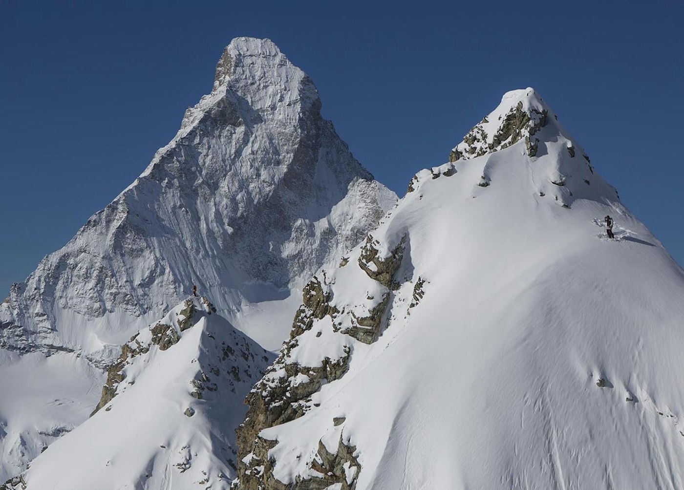 What follows is my favorite segment of the film. While Collinson hosted Anthamatten in the Utah backcountry, the role of host flips, and we see the two big-mountain skiers take on the formidable slopes of Zermatt—the place where Anthamatten was born and raised and where he’s completed nearly 200 days worth of specified training under UIAGM supervision, developing mountain guiding skills to complement his natural talent on skis. (Stay tuned for a must-read profile of Anthamatten in FREESKIER’s upcoming Backcountry Issue, hitting newsstands on November 7, 2017.) Anthamatten and Collinson ski surreally-large and absurdly steep mountain faces with speeds and fluidity that incite comments like, “Are you f#cking kidding me?” or “What, the actual, f#ck?” — two quips overheard in the theater last night, among other expletive-laden remarks. The skiing coupled with the raw beauty of peaks like the Matterhorn and Weisshorn make for an unforgettable segment.