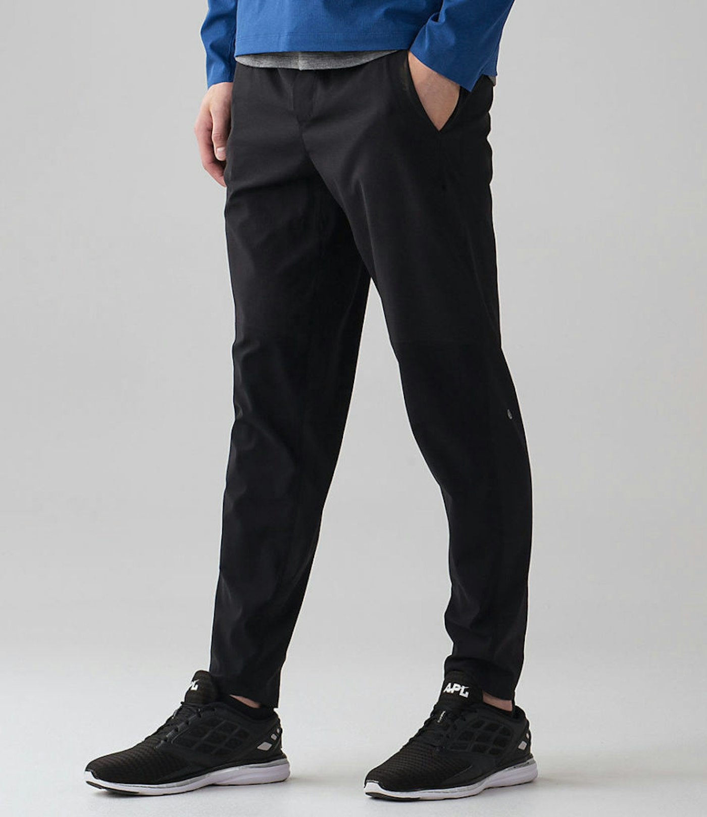 For all sorts of training activities, from running to biking to yoga, this pant will be your best friend. The comfort factor is huge; after having worn these extensively for the past few weeks, I began to think, âSo, this is why many ladies out there seem to never, ever remove their lulu leggings.â The pant is designed with a knit panel at the knee for increased mobility and boasts supreme stretchiness. The fit is streamlined through the butt and quads and narrow from the knee to cuff, for a decidedly sporty, jogger-esque look. The inseam registers 32 inches and the elastic waistband is mighty comfortable. Youâll find pockets on the left and right, with zipper-less internal pockets on each side, as well. There is a zippered pocket on the right side, between the butt and the thigh, for a phone, wallet, etc. The false fly provides a nice look, as well. Iâve been sporting a size M.