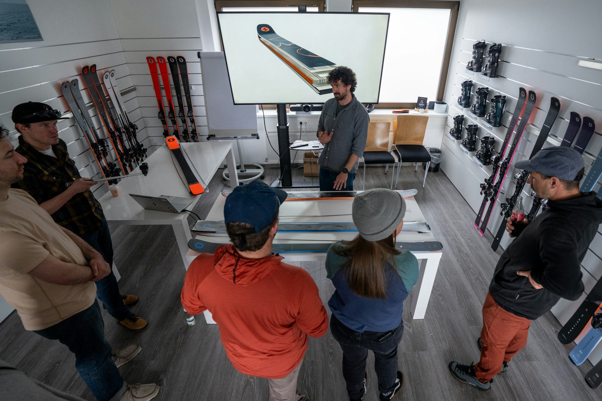 Blizzard’s International Product Manager, Gianluca Bisol, greeted us at the factory gates and led us up to the showroom for a quick espresso before walking us through a step-by-step demonstration of each material that that goes into the sandwich construction of both the Anomaly and Black Pearl skis. We continued on through a hallway lined with Blizzard’s ski models through the years, where Blizzard’s Marketing Manager for German Speaking Countries, Steiner Thorsten, explained to us how generations of ski construction, shape and material usage have changed by walking us through a model by model evolution through the years. Thorsten then painted us a timeline of Blizzard’s progression into the competition world which resulted in teams of highly decorated athletes and brand ambassadors worldwide.