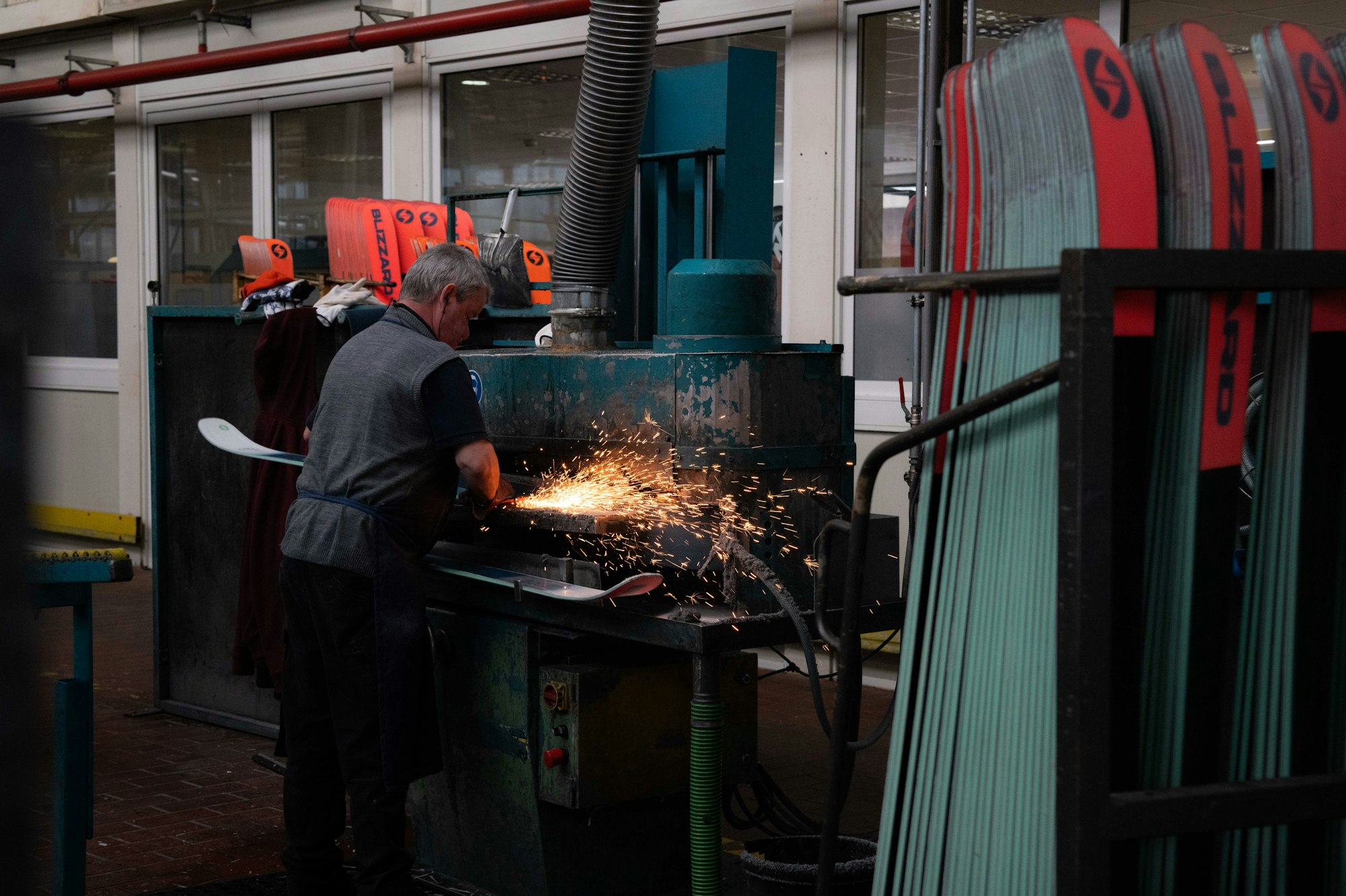 Following the history portion of the tour, Blizzard’s International Lead Engineer, Stefan Moser, welcomed us inside the active operations of the factory and witnessed materials passing through hundreds of hands facilitating the construction of each single pair of skis. Men and women of all ages work at the factory, many of whom are lifelong residents of Mittersill. It was a humbling experience to see how much extreme precision, extensive evaluation and rigorous approvals go into each pair of skis throughout the multistep manufacturing process.