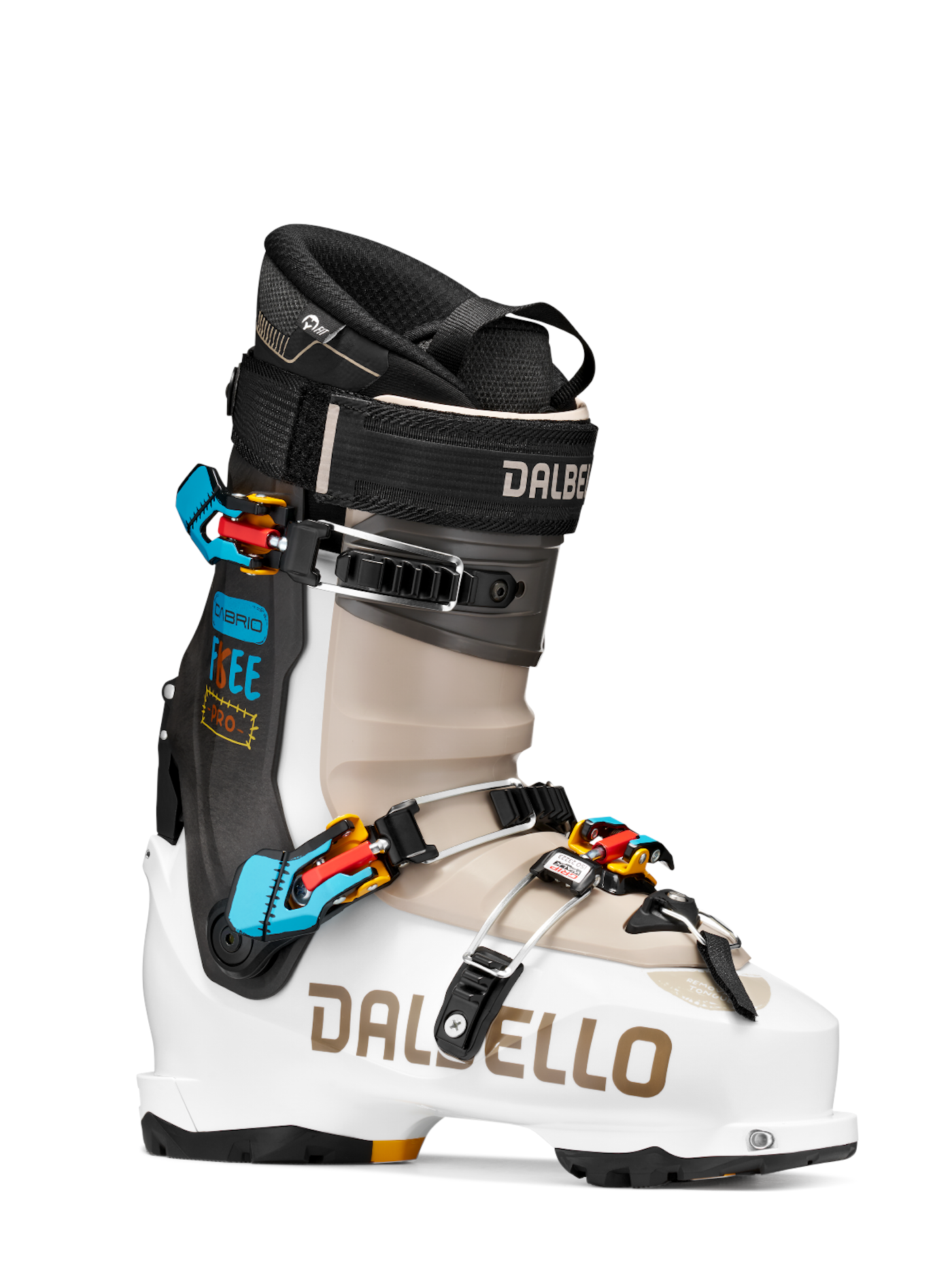A new take on the iconic three-piece Cabrio design, the Cabrio LV Free Pro balances uphill efficiency with downhill power. The removable tongue increases range of motion for climbing and, once you’re ready to rip, just replace the tongue and trust the Cabrio ski/walk connection to hold on tight for the descent. With a 99-millimeter last, it offers a precise fit for narrow feet. While a woman’s 105 flex exists, the stiffer 130 model is also available down to size 24.5. The boot also features artwork by Emiliano Denaggio, matching the new Revolt skis and carrying his son Leonardo’s creative inspiration into the touring category.
