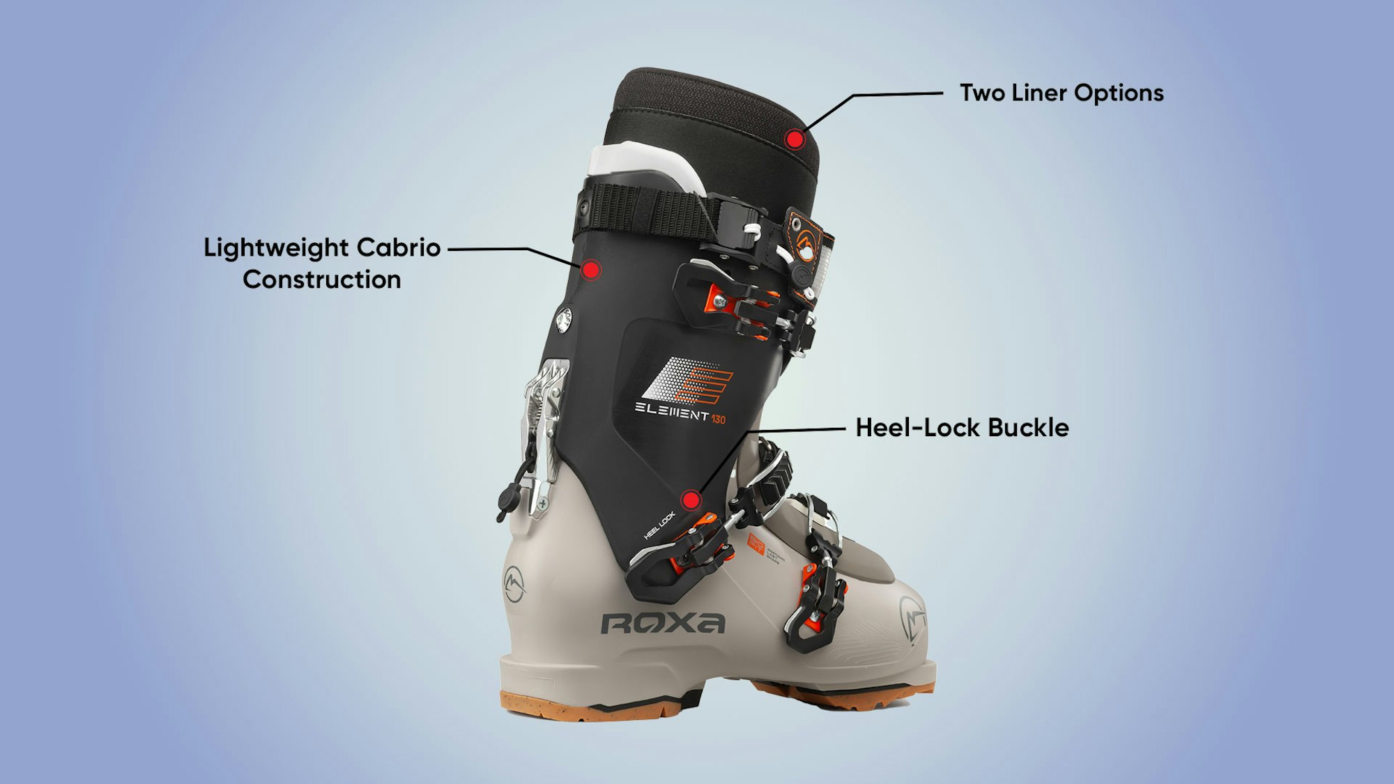 Roxa’s Element 130 I.R. cabrio design features a Grilamid shell, tongue, and cuff. The tongue helps with comfort and ease of getting in and out of the boot and when combined with the shell and cuff they create a suspension system which provides a consistent, lively and balanced flex. The Element comes with either an Intuition tongue liner or wrap liner to fit your preferences, and utilizes a Heel-Lock buckle designed to pull at a 45-degree angle across your ankle to provide better heel hold.