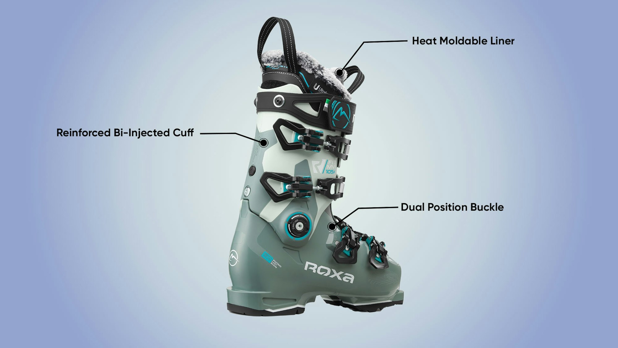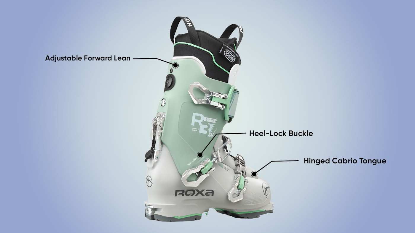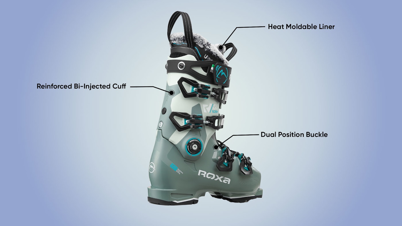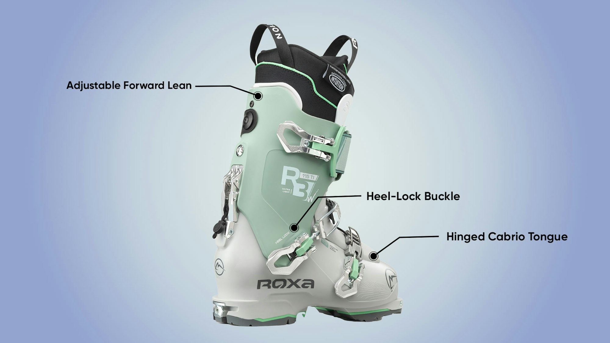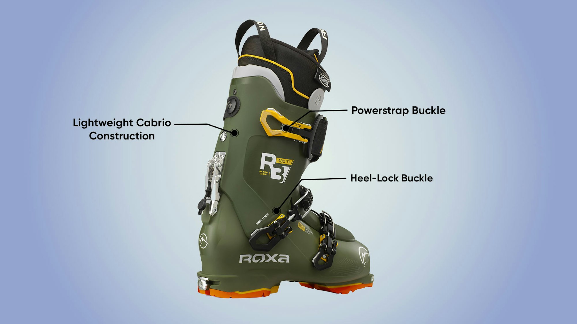 The Roxa R3 130 TI retains the same cabrio qualities as the Element I.R. 130 (mentioned above), with some serious upgrades for the skier who spends more time in the backcountry. Sitting at the top of the boot is Roxa’s Powerstrap Buckle, which functionally replaces its top buckle. The buckle system improves the stride range of the boot on the uphill, and negates the frustration of fiddling with a traditional power strap and top buckle on transitions.